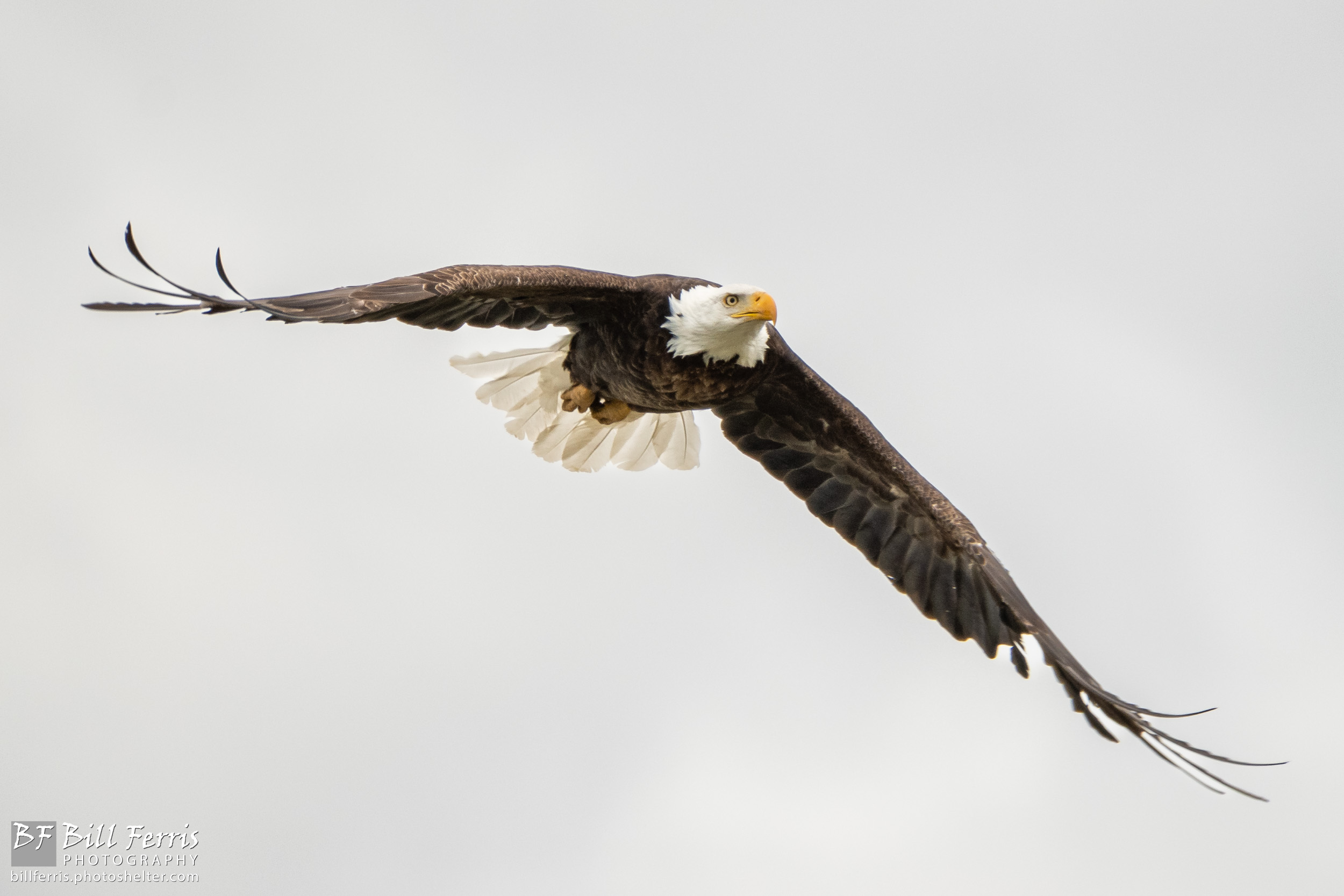 A bald eagle in-flight over Yellowstone National Park.