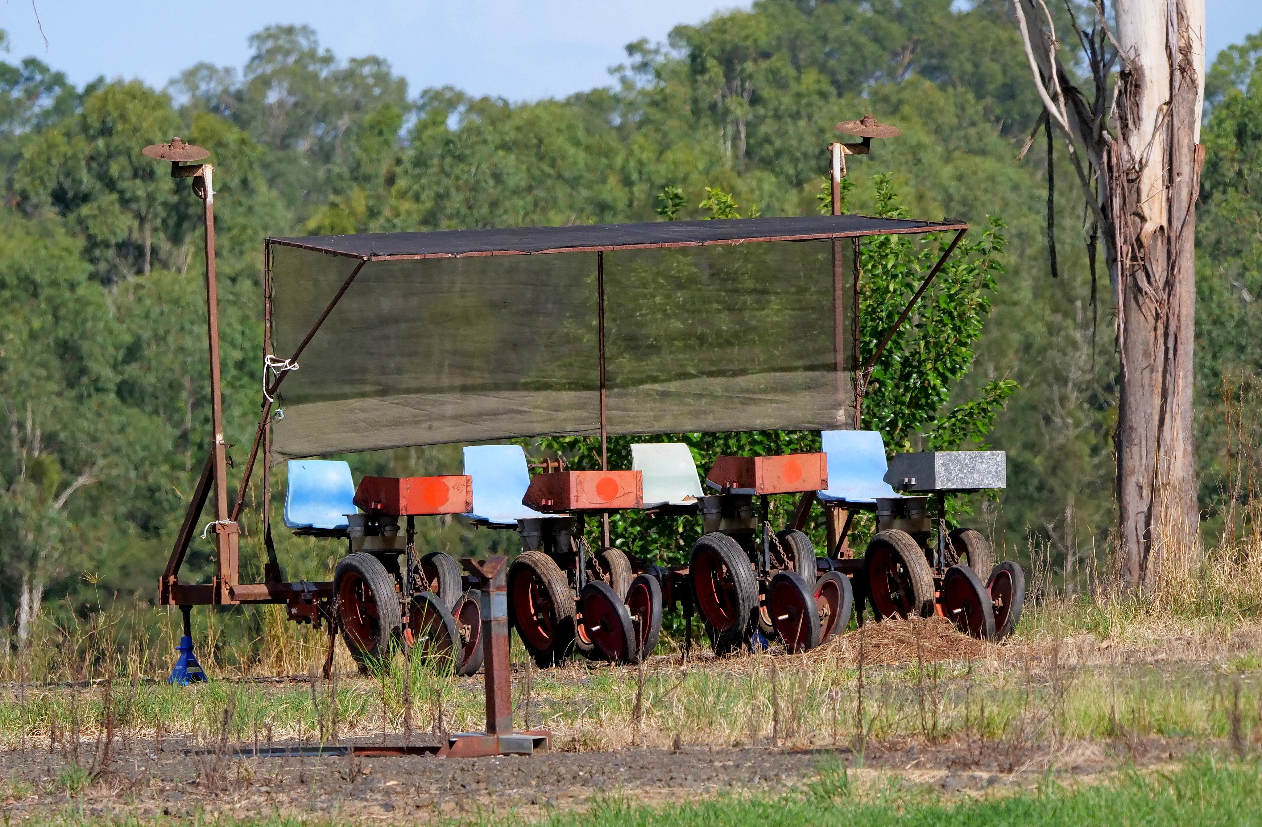 A local farmer has kept this somewhat ancient seedling planter operational