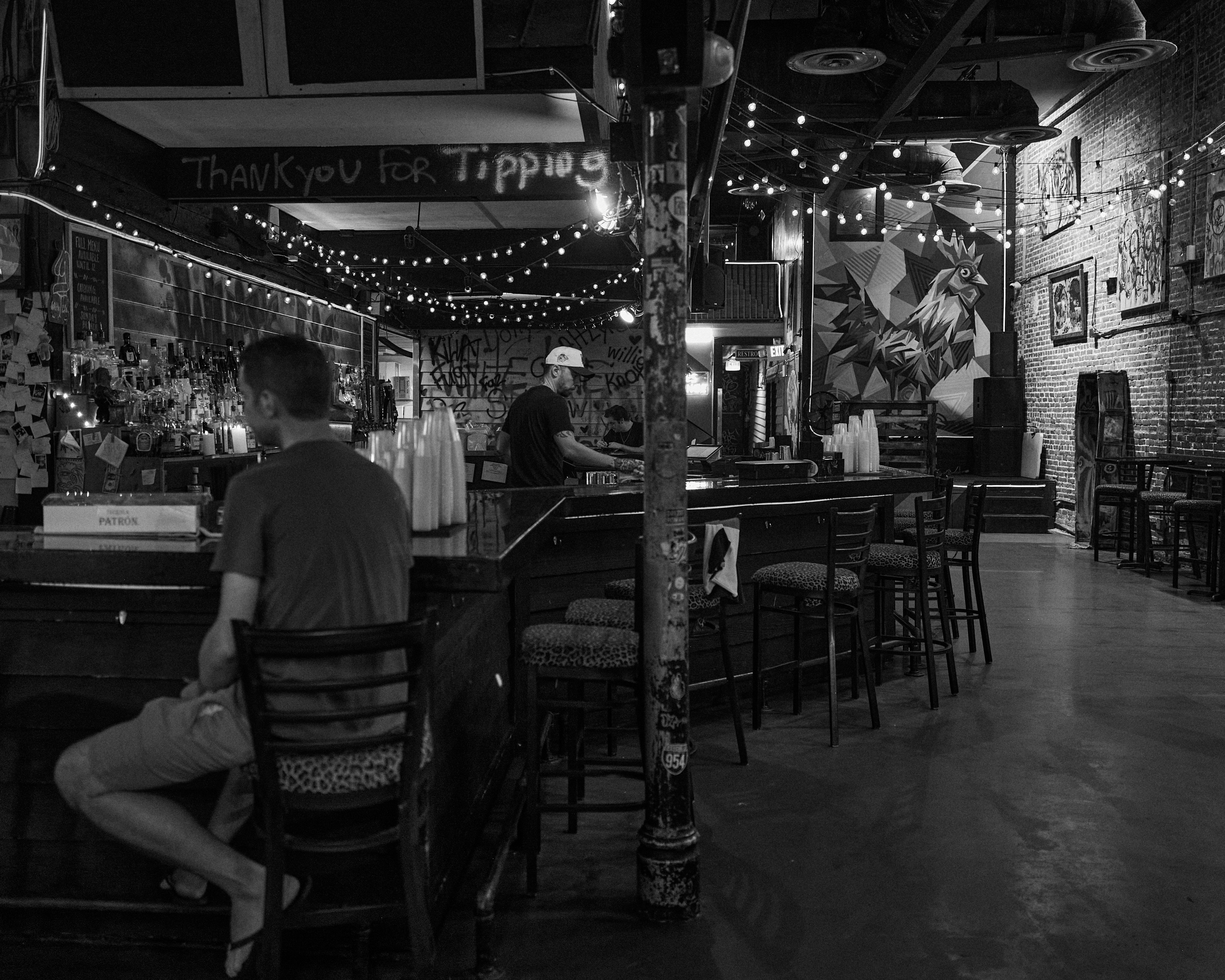 Nice photo. It definitely shows a sense of loneliness. Also, a very interesting looking bar.