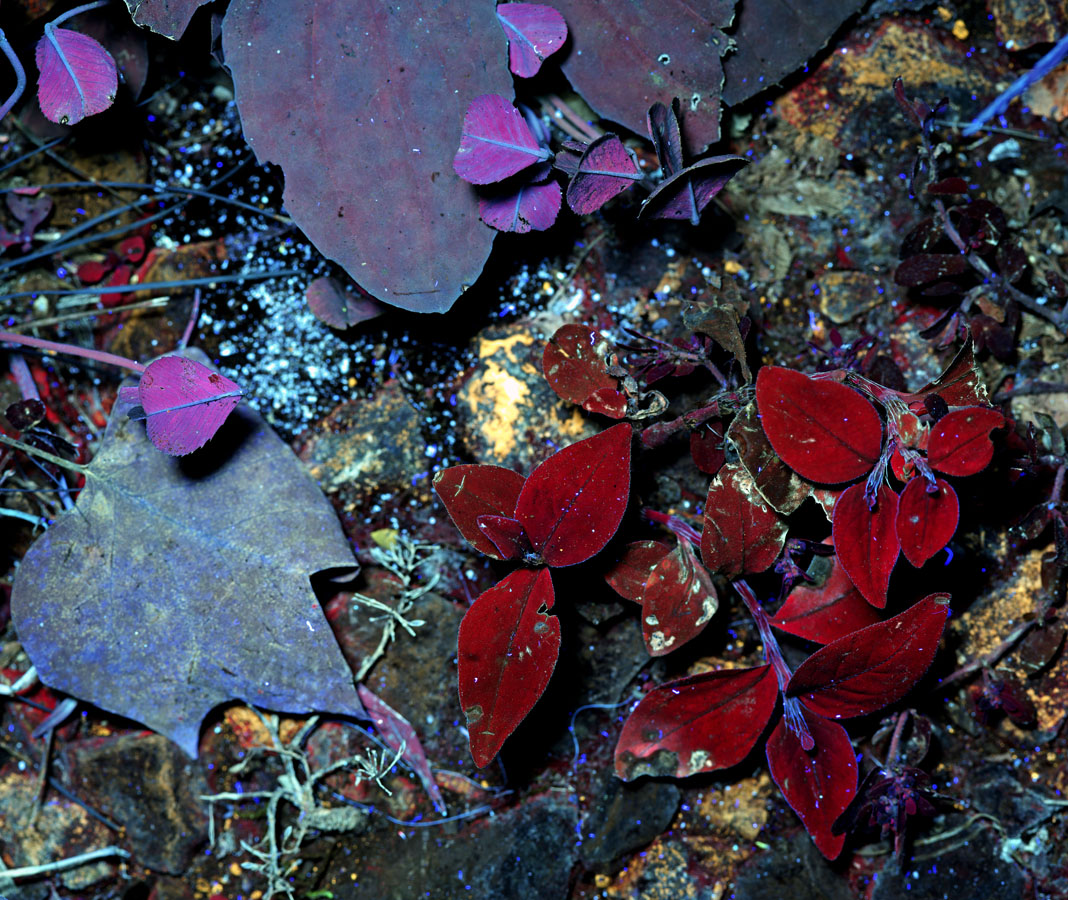 This is an UltraViolet Induced Visual Fluorescence (UVIVF) photo. Some subjects lit by UV emit visual light. Light purity matters a lot. Used "Nemo" 365nm flashlight with built in filter to illuminate subject. The flashlight filter eliminates anything approaching visible light. Stock Pentax 645Z camera, Pentax A series 120 macro with Tiffen Haze 2A. The haze filter eliminates UV contamination of the visual fluorescence.