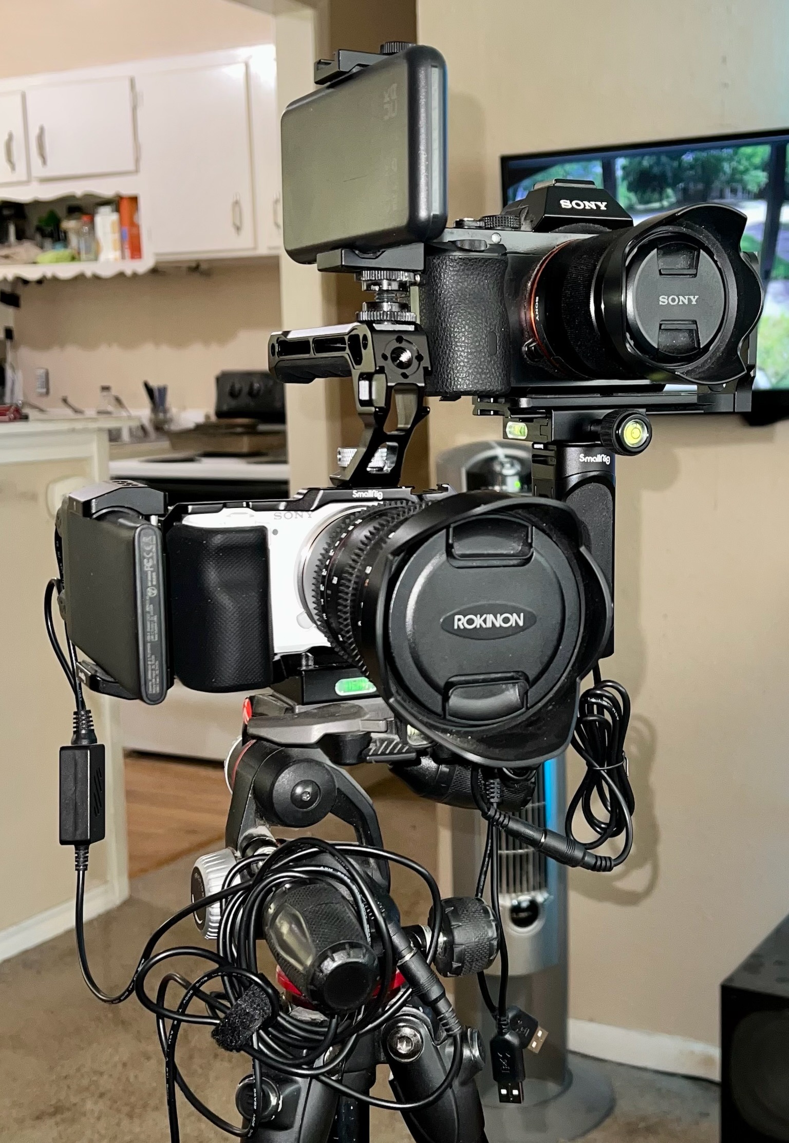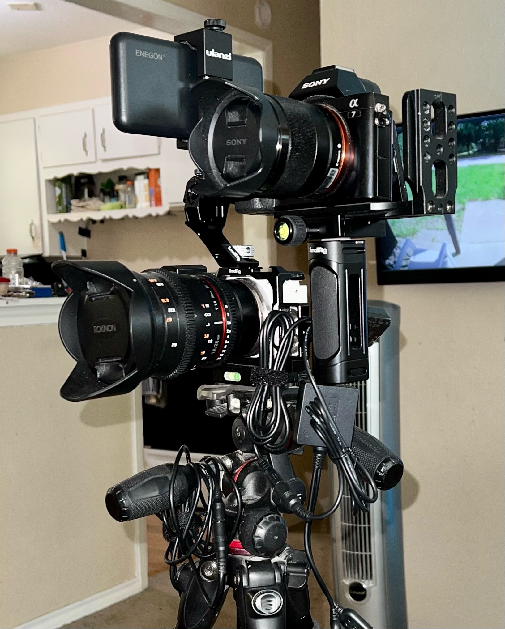 I have to admit I love a challenge. I shoot in Bortle 8 sky with a lot of light pollution, so it is even more challenging than in dark sky. I built a rig to capture both video and photos at the same time. I used a Sony ZV-E10 with Rokinon 20mm t/1.9 lens for video and a Sony a7 with FE 28mm f/2 for time lapse photos.