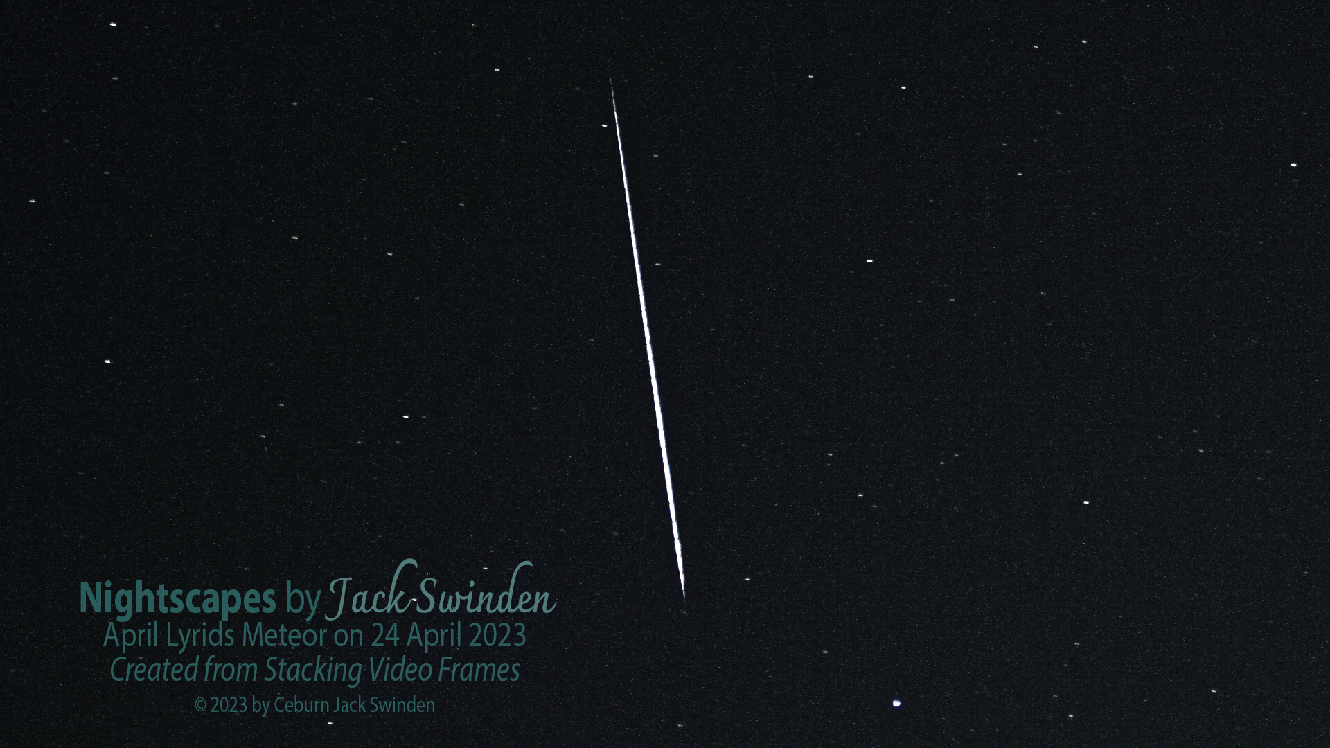 Very interesting to see your comparison between the 15s exposure and the stacked frames. It really jumps out how much brighter the meteor looks in the stack, but at the expense of background/star detail (and more crucially, light pollution). I think you just proved my point there regarding the benefits of shooting footage vs long exposure stills from light polluted sites Jack! :)