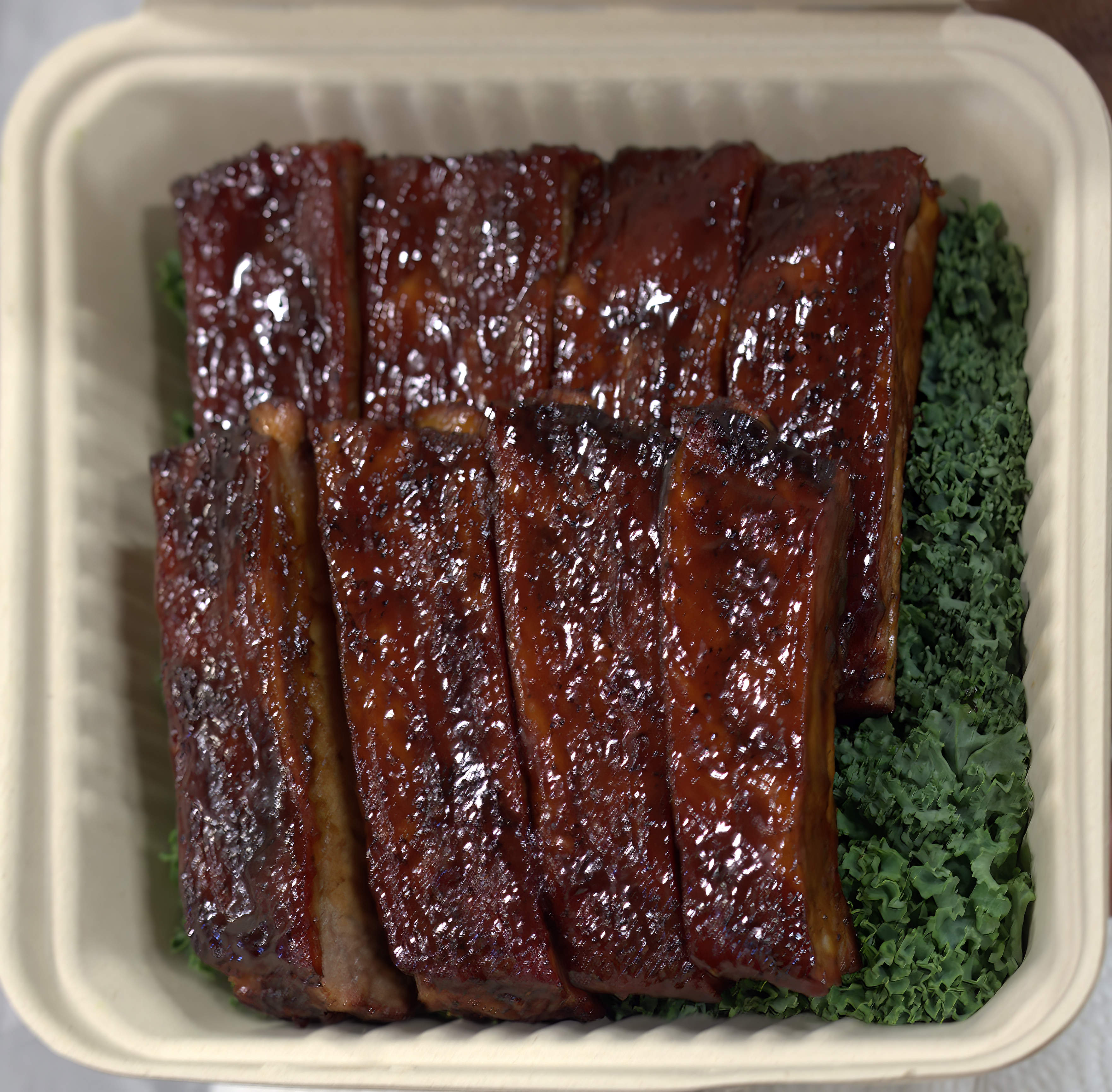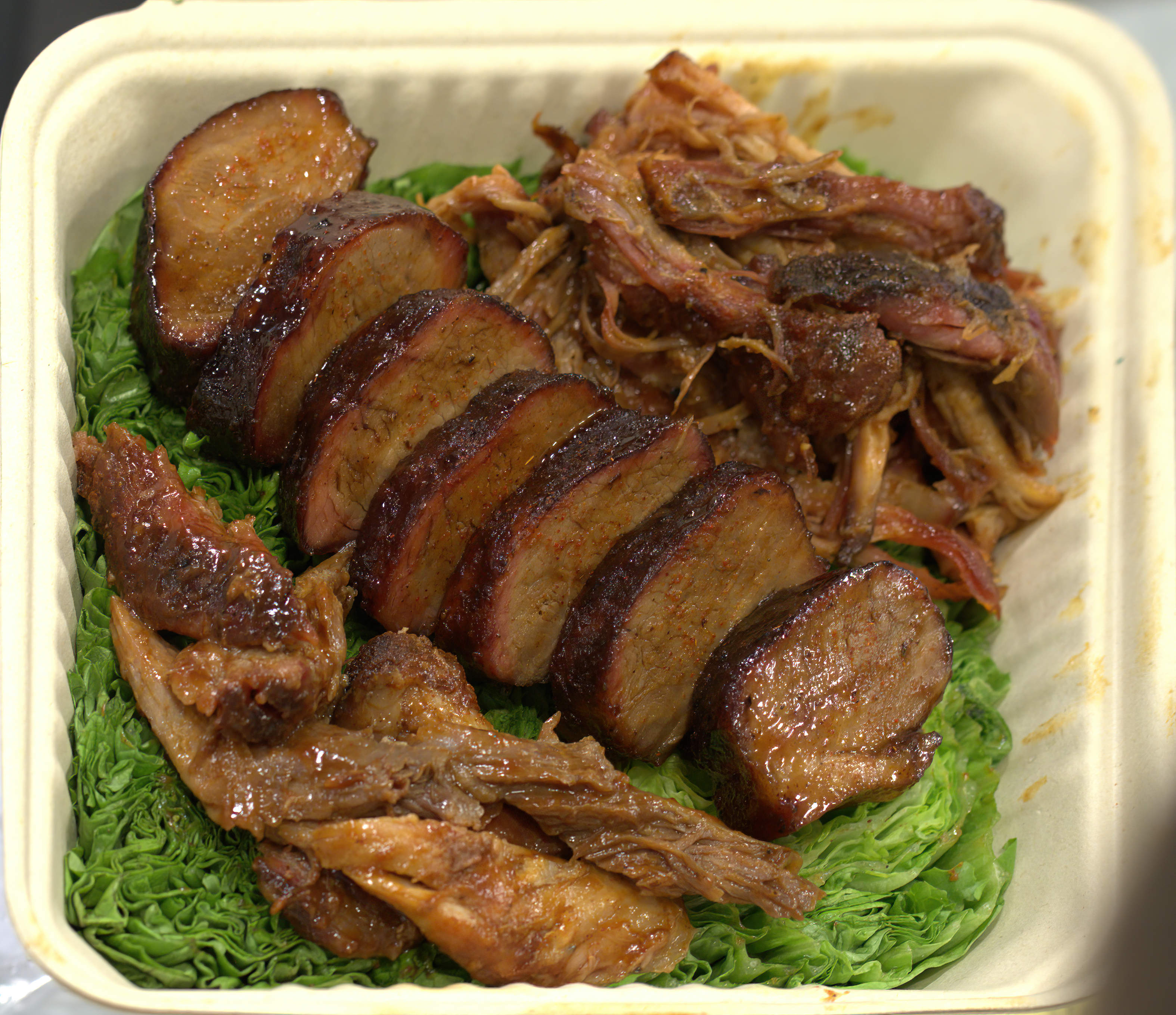 A few more images and some explanation. The food presented to the judges was marked for presentation and taste. The food had to fit in a smallish cardboard take out container and had to be presented on a bed of kale. (I don't make the rules and have no idea why so save your breath!) Each competitor had to provide four different meats: chicken, ribs, pork, and brisket. From what I gather having seen the presentations, they could be any form or part of them prepared on a traditional barbeque or smoker.