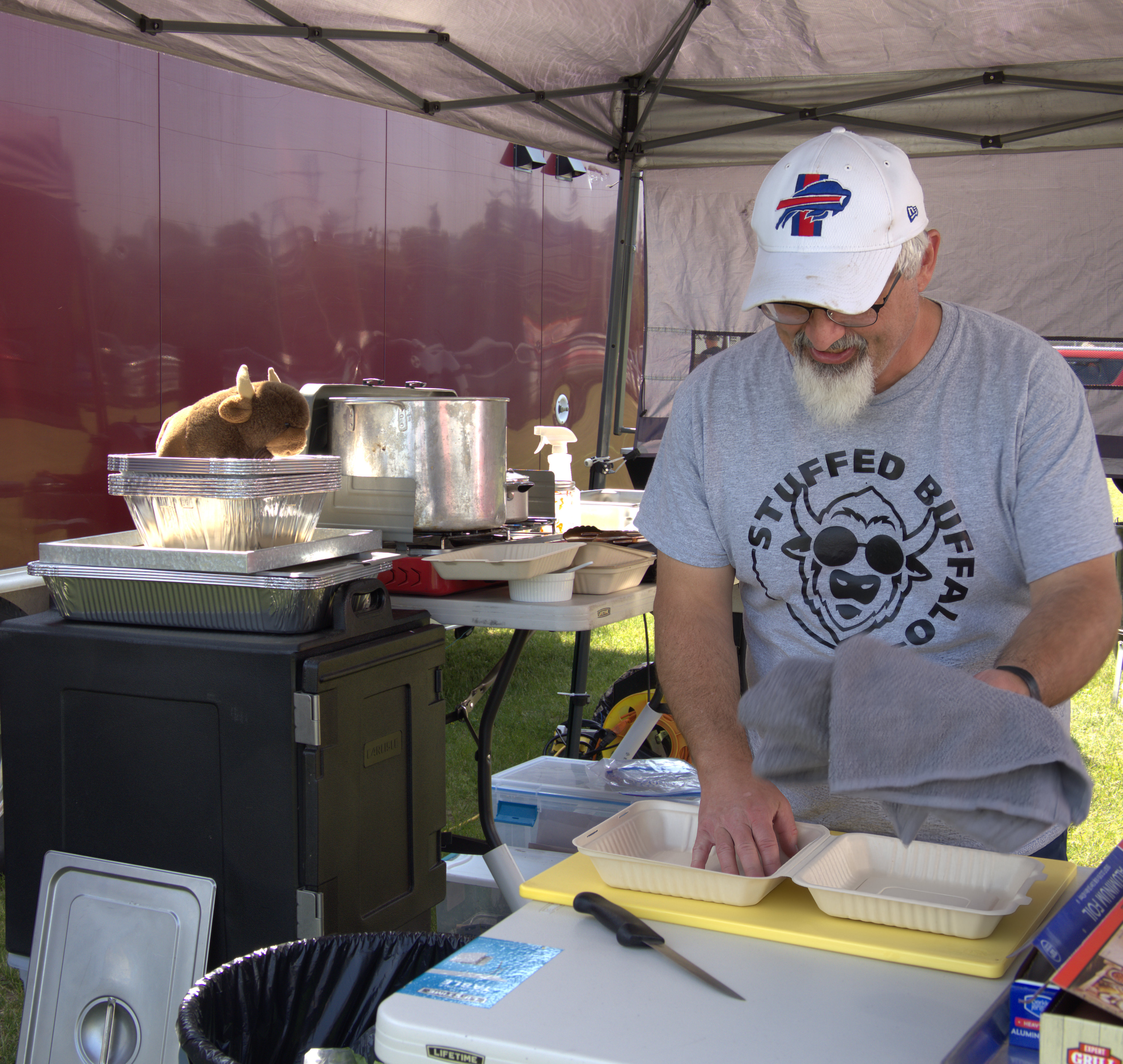 During the cooking for the competition I don't think the competitors would have had time to prepare and sell food in any case. Some were up all night before the judging preparing their slow cooked meats. Some cooked more quickly at higher temperatures and only had to get up at 5 a.m.!