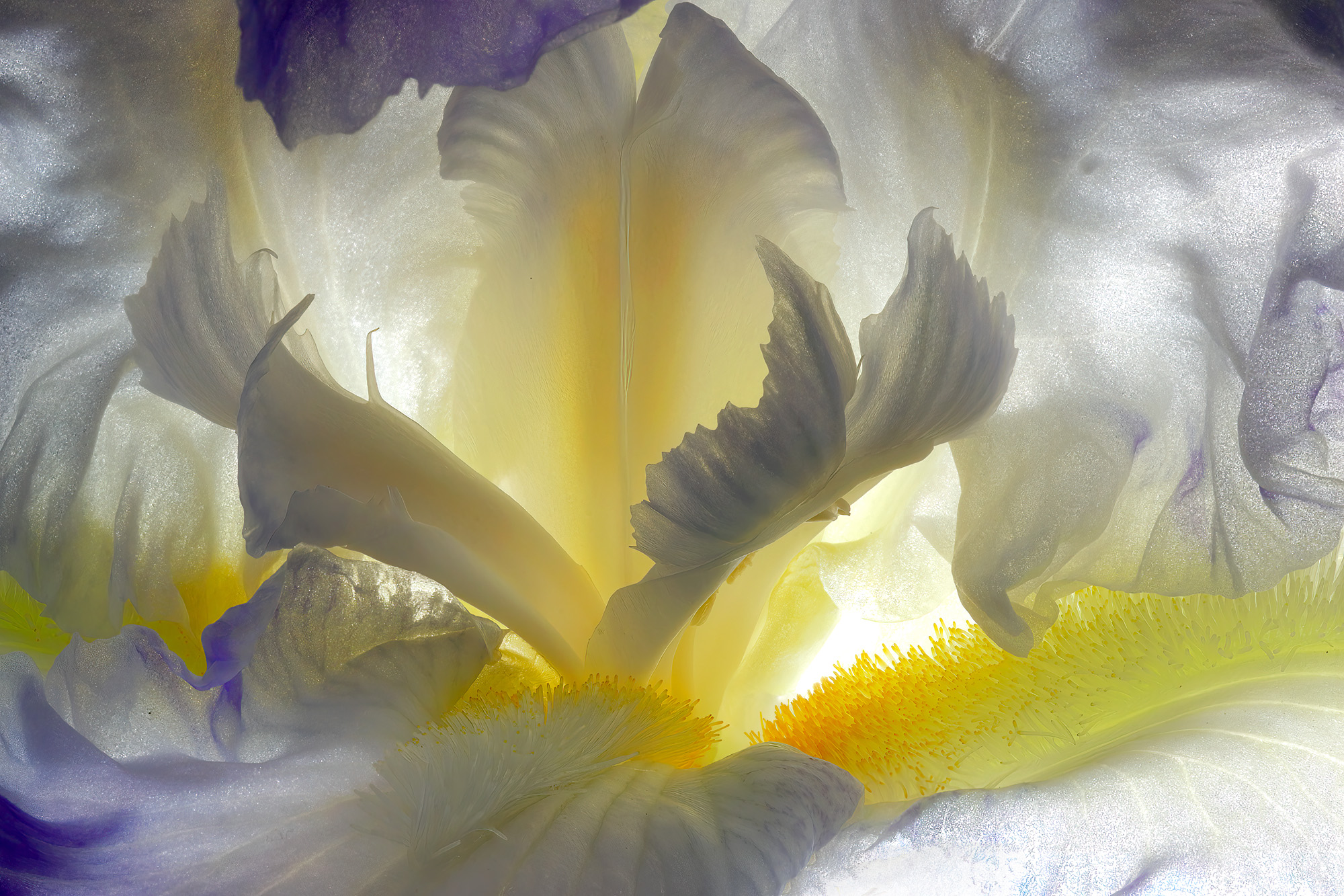 Color and tonality and the sinuous curves of the iris make this a striking flower portrait. It's bit abstract for some tastes but I like it lots.