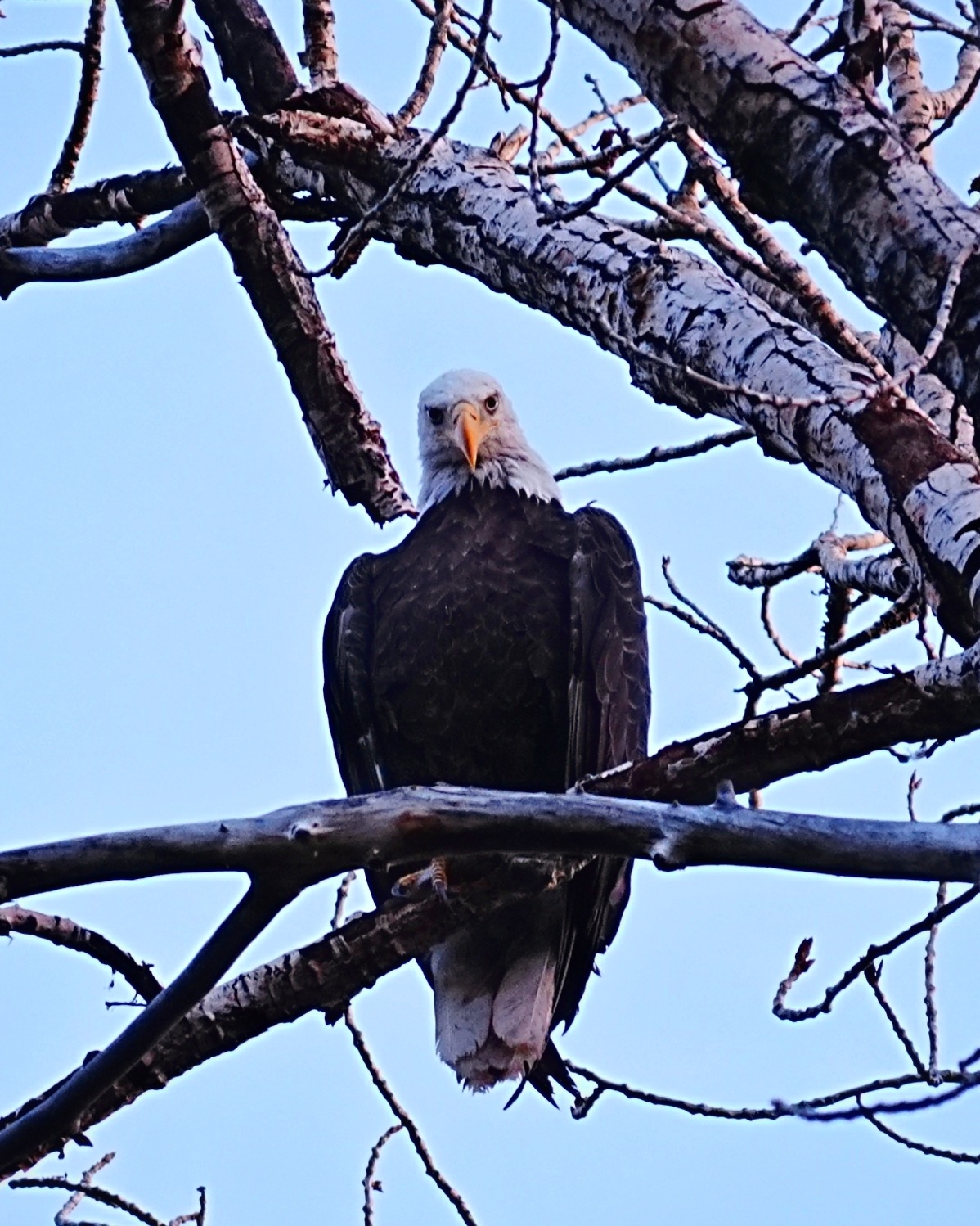 American Bald Eagle. The light was terrible and it was difficult to get a good shot. Plus the big guy was staring me down like he was going to swoop down and grab the camera out of my hands, which was a little unsettling.
