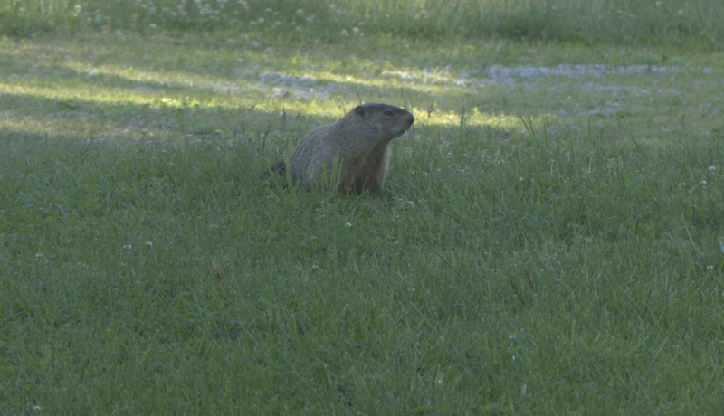 Looks like a Groundhog. Those aren't welcome in my garden. When they get in there, I shoot them, but not with a camera....