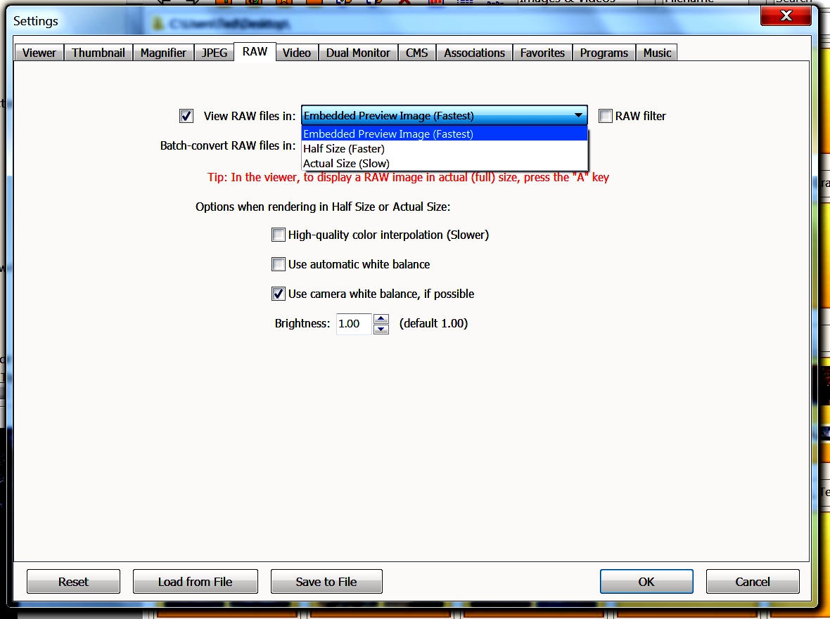Case in point: my Sigma SD9 and SD10 have no full-size embedded JPEG and only output raw files of type .X3F. My FSV is set to convert raw files as opposed to extracting the embedded JPEG.