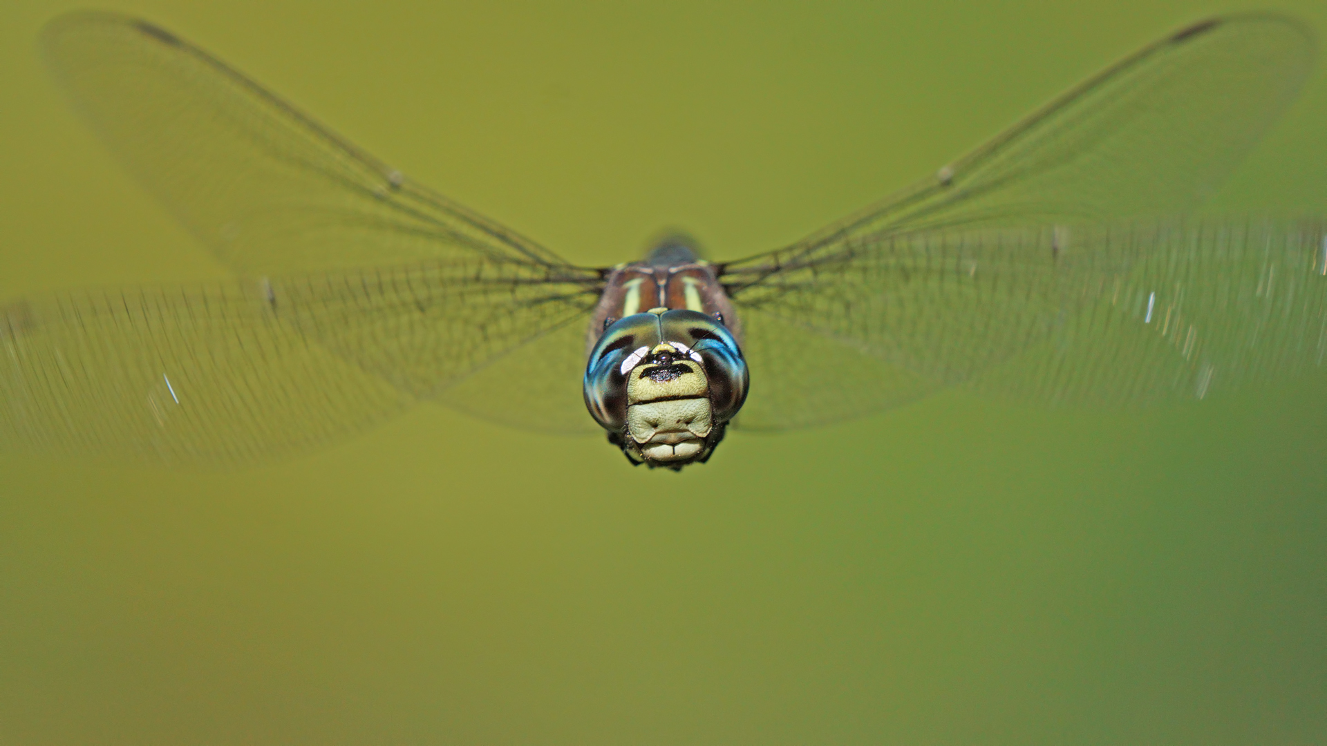 I've made plenty of photos in which a raptor in-flight makes eye contact through the lens but not one in which the bird is head-on with the wings folded back against the body.