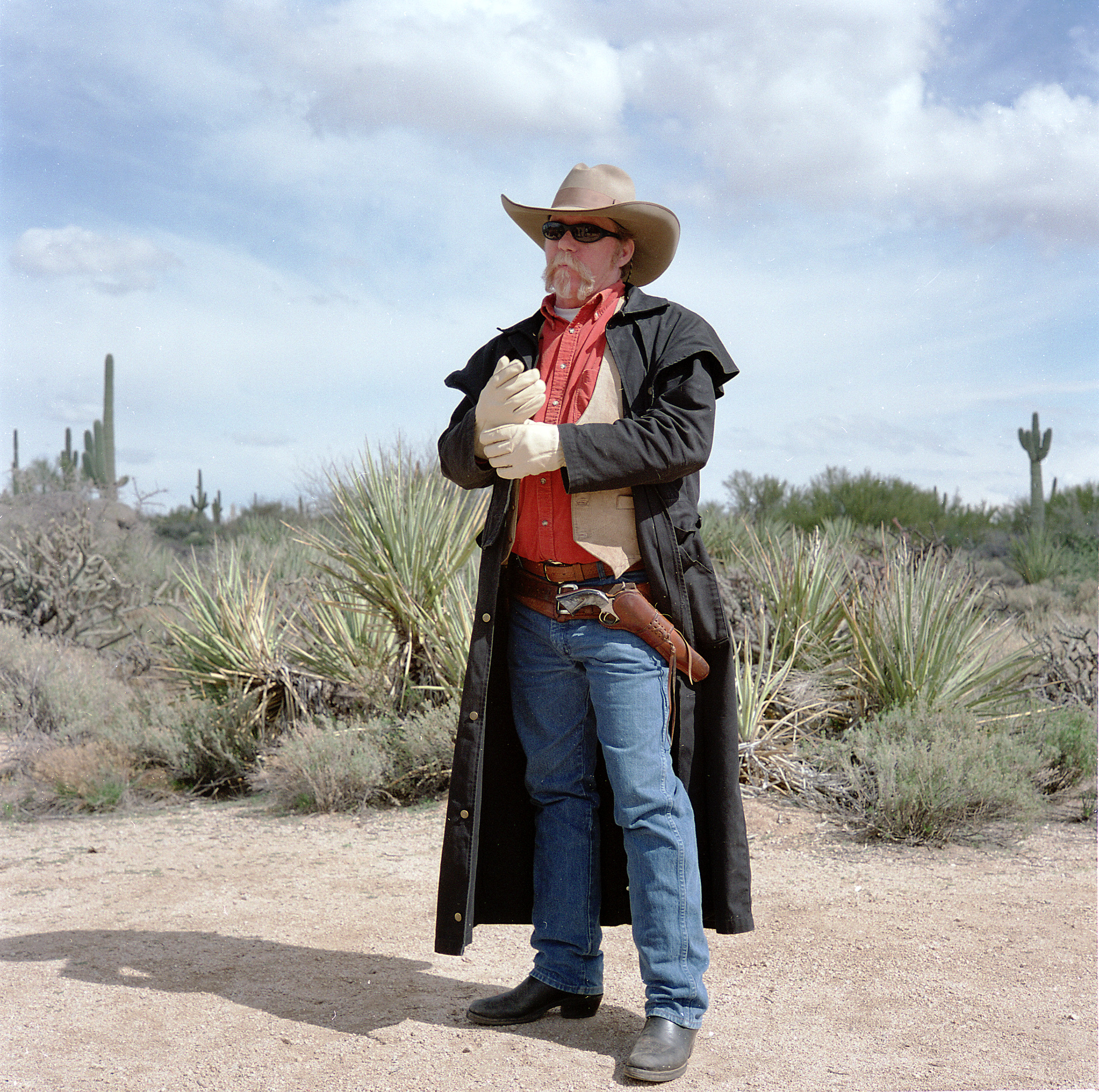 . . . 'Gonna be hard to handle that there six shooter with those gloves, pardner . . .
