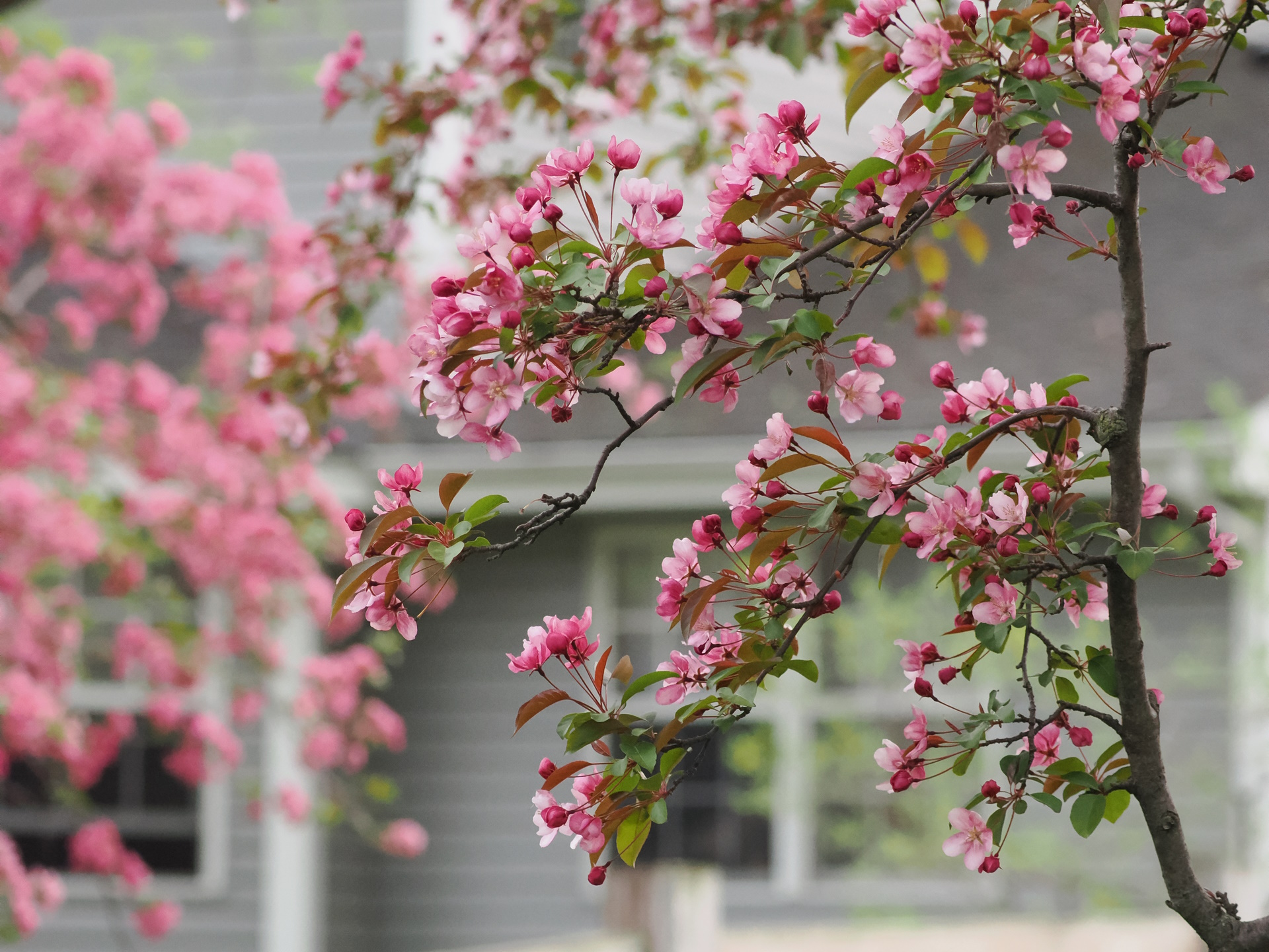 Our crabapple just came into bloom. Smells great, and looks pretty good too.