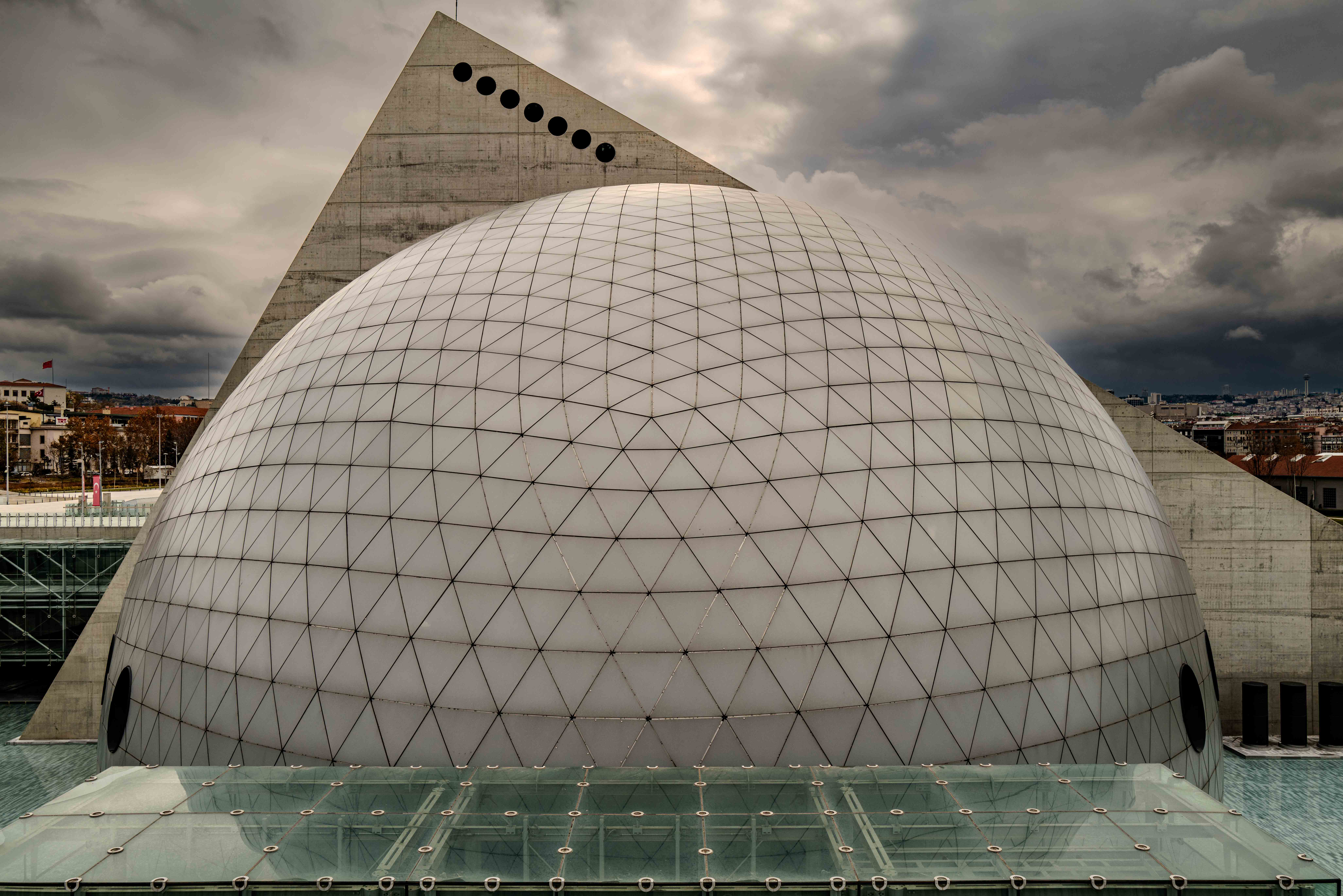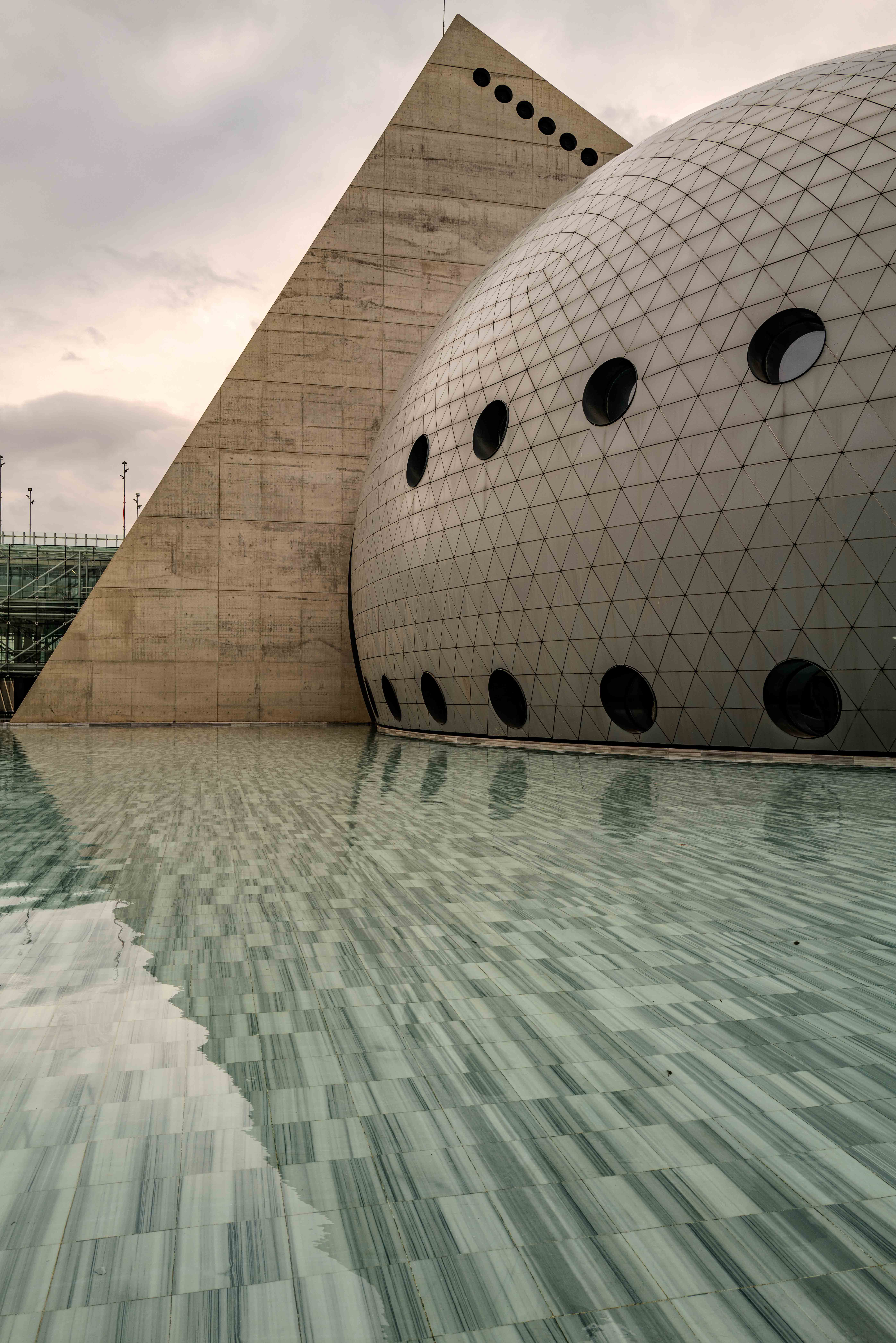 I have an interest in geodesic domes. While this is a monolithic shell, what caught my eye was the geodesic pattern they used on the surface.