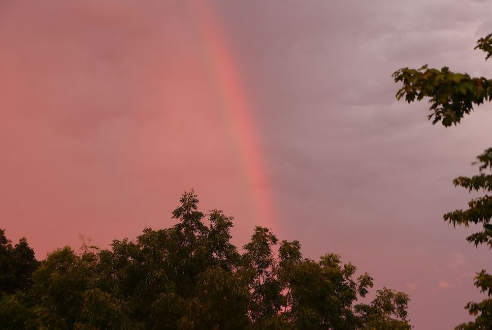 I submitted this photo earlier in the Collegial Thread, but the more I look at it, the more I like it, not so much for the rainbow itself, but for the line of demarcation it makes in the sky.