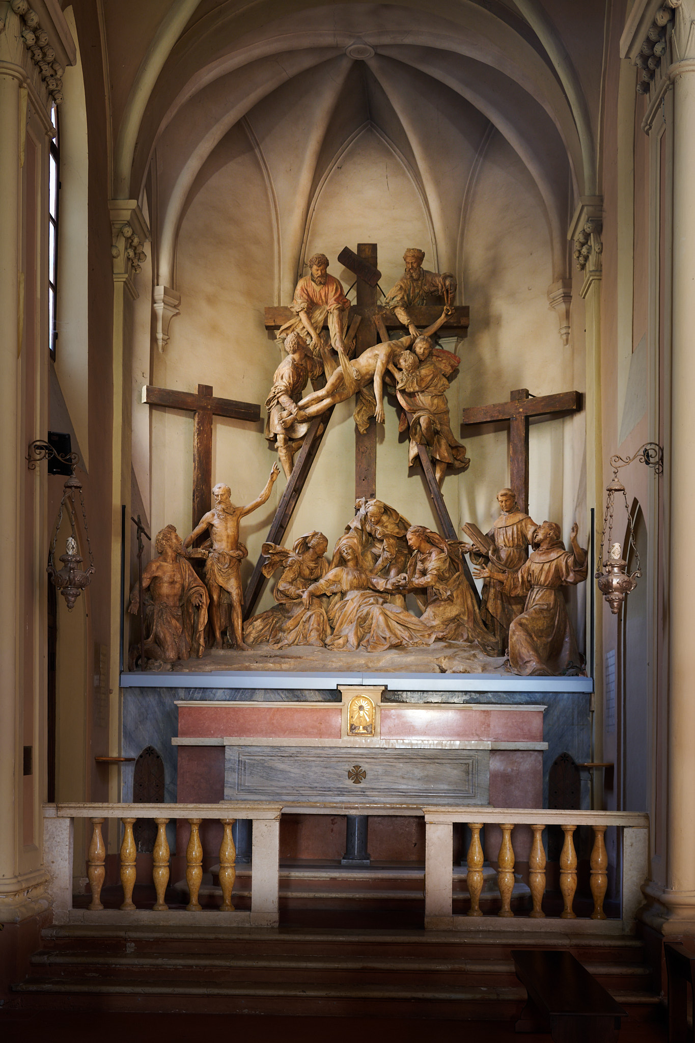 I have become fascinated by the Renaissance clay sculptures, that I have come across in my part of Italy. This set shows "The Deposizione dalla Croce", ( 1530) in San Francesco, Modena, by Antonio Begarelli. The style veers towards classical antiquity, rather than realism, but all the drama and passion of Easter is here, rather than our presentsaccharine Easter bunnys.