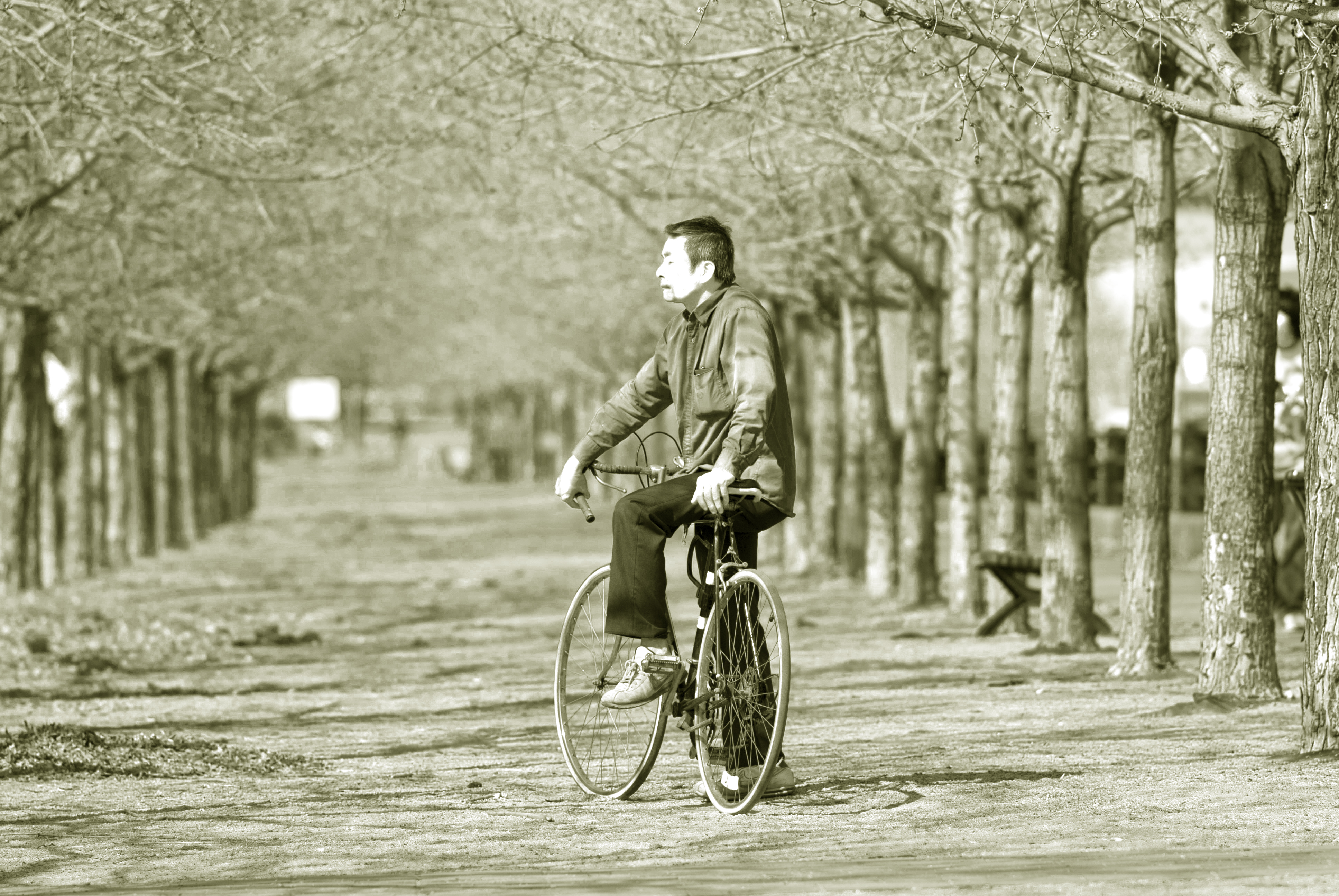 Playing with a toy-camera look. Also got some of the shadows off his face and that annoying blue ticket out of his pocket. Got rid of the nuisance objects outside the trees. It was a hassle cloning them out the old fashioned way. Now that I'm used to letting AI take a run at removing distractions, it is harder to go back.