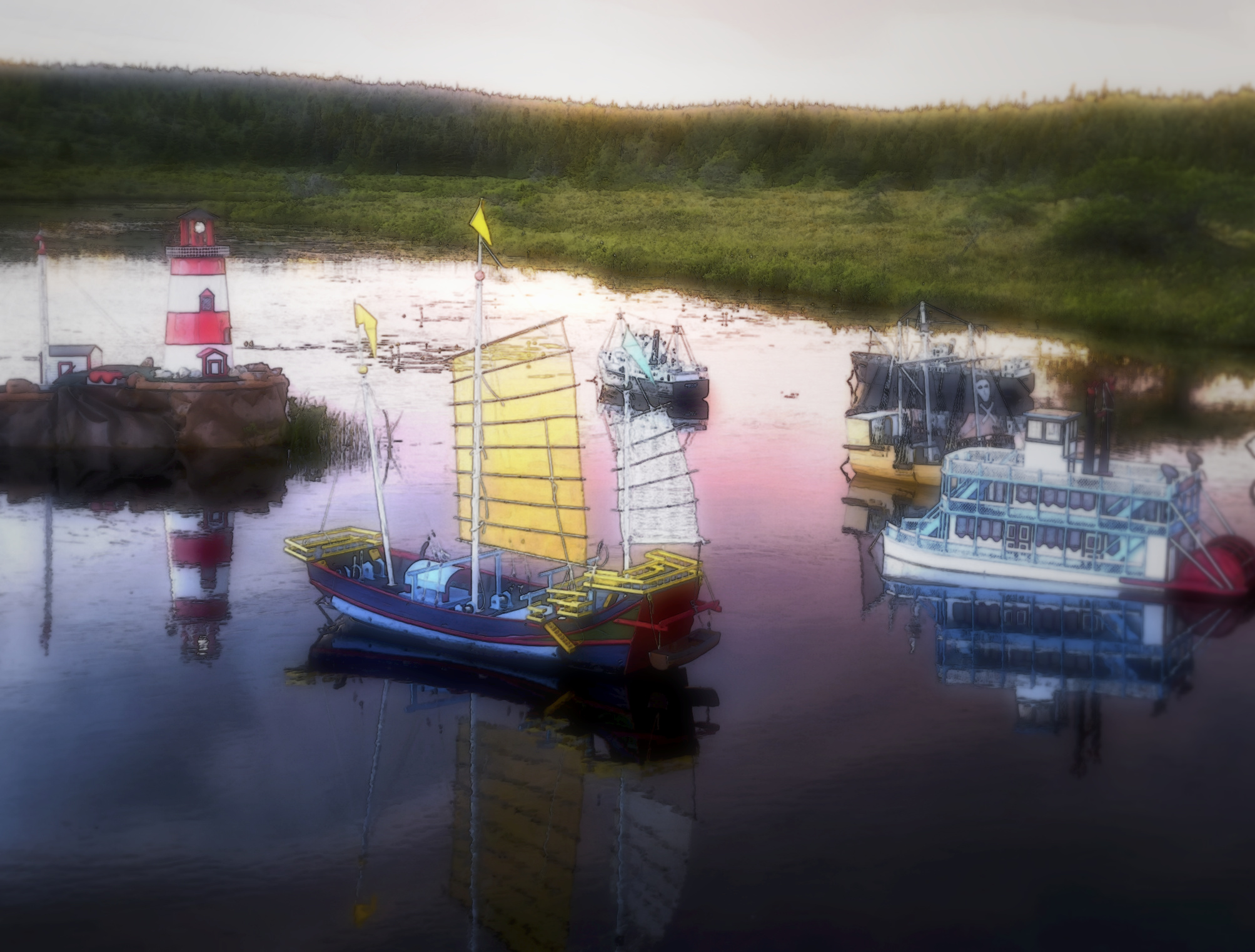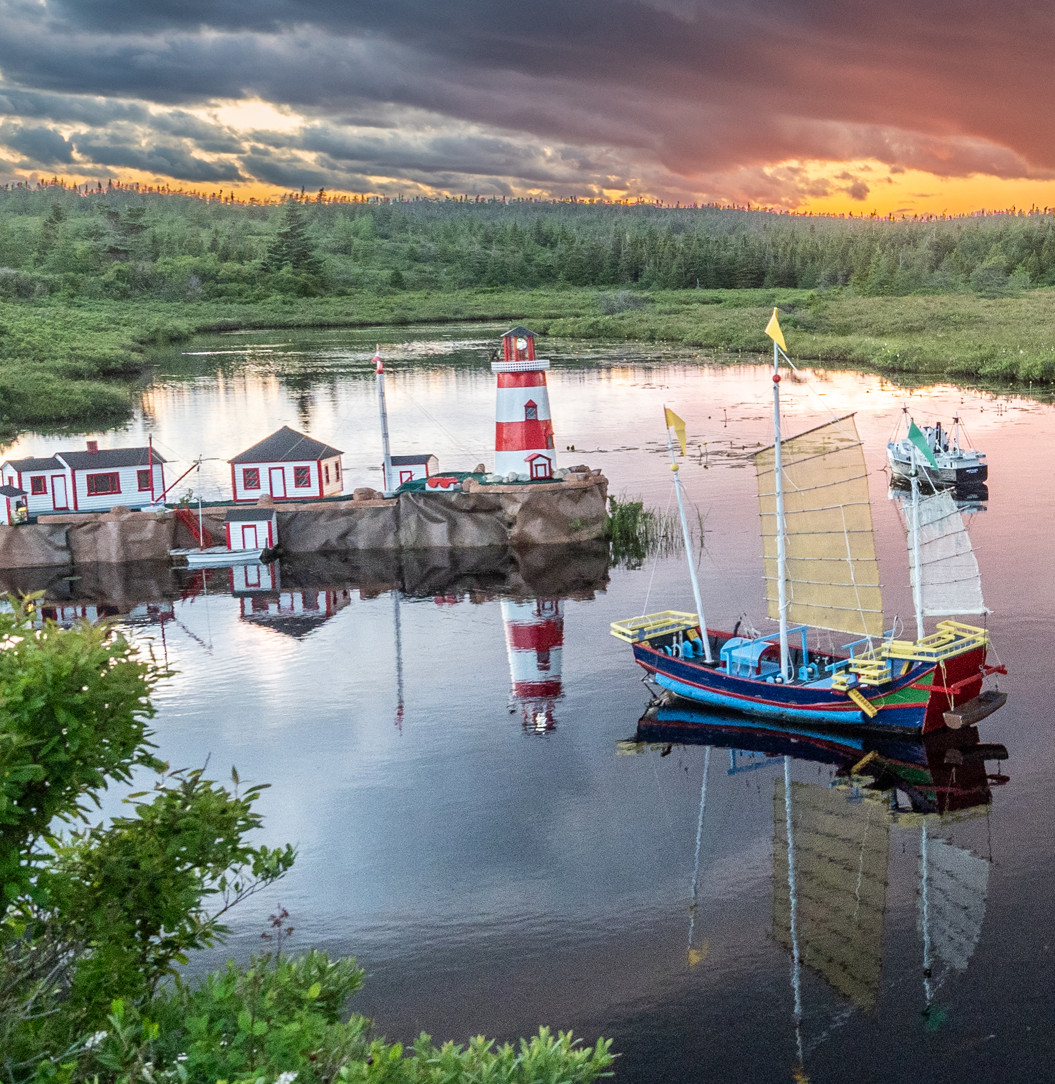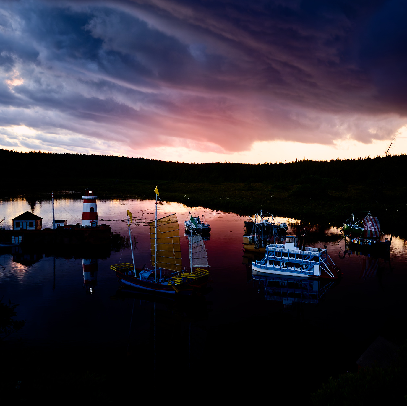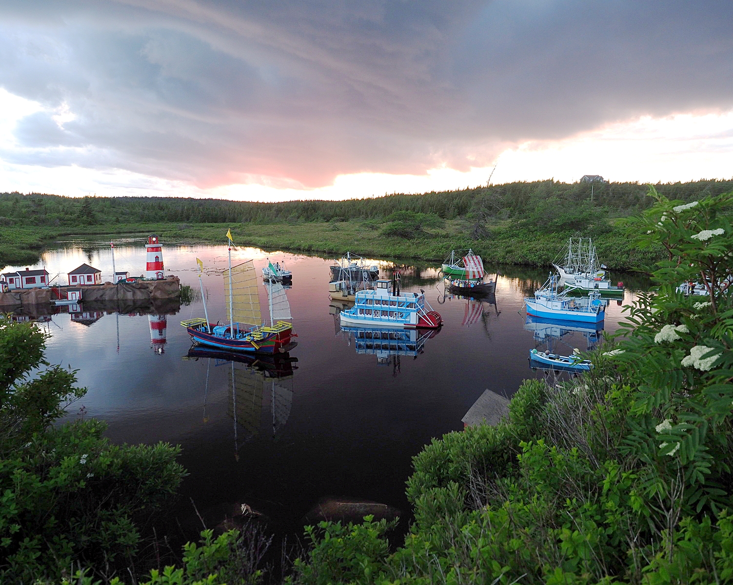 About This Image: I have never been more confounded by an image. It was taken in Newfoundland in the wilderness section of the Avalon peninsula, near the village of Witless Bay. A fierce storm blew in from the sea, making the day dark as night. We pulled off the road on a gravel pullout and waited it out in the car. As the sky brightened afterwards, we noticed a path over a slight ridge, explored it, and found this scene. Dozens of little boats, carefully built, each about 3-4 ft tall, bobbing in the river. A sign noting the builder. I thought that with the threatening but colorful sky and all those boats and reflections I'd be able to make something interesting of it with editing and cropping. But I never could. Maybe you can...JPG below, original raw file (ORF) in dropbox here www.dropbox.com/scl/fi/3cwv0i9thgatnndm381lp/last-week.orf?rlkey=5jgl9wops8yg63m15dfhgertu&dl=0