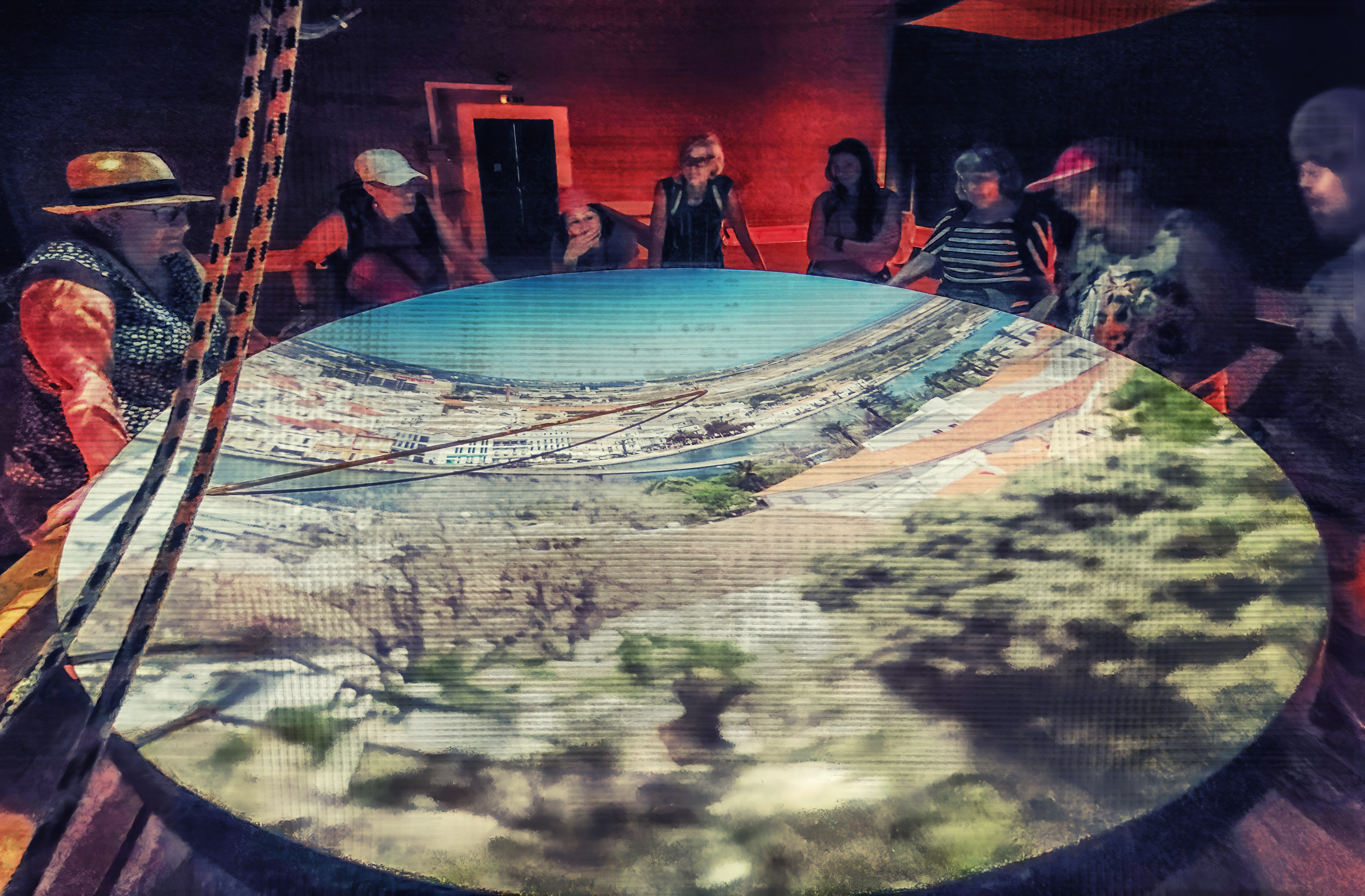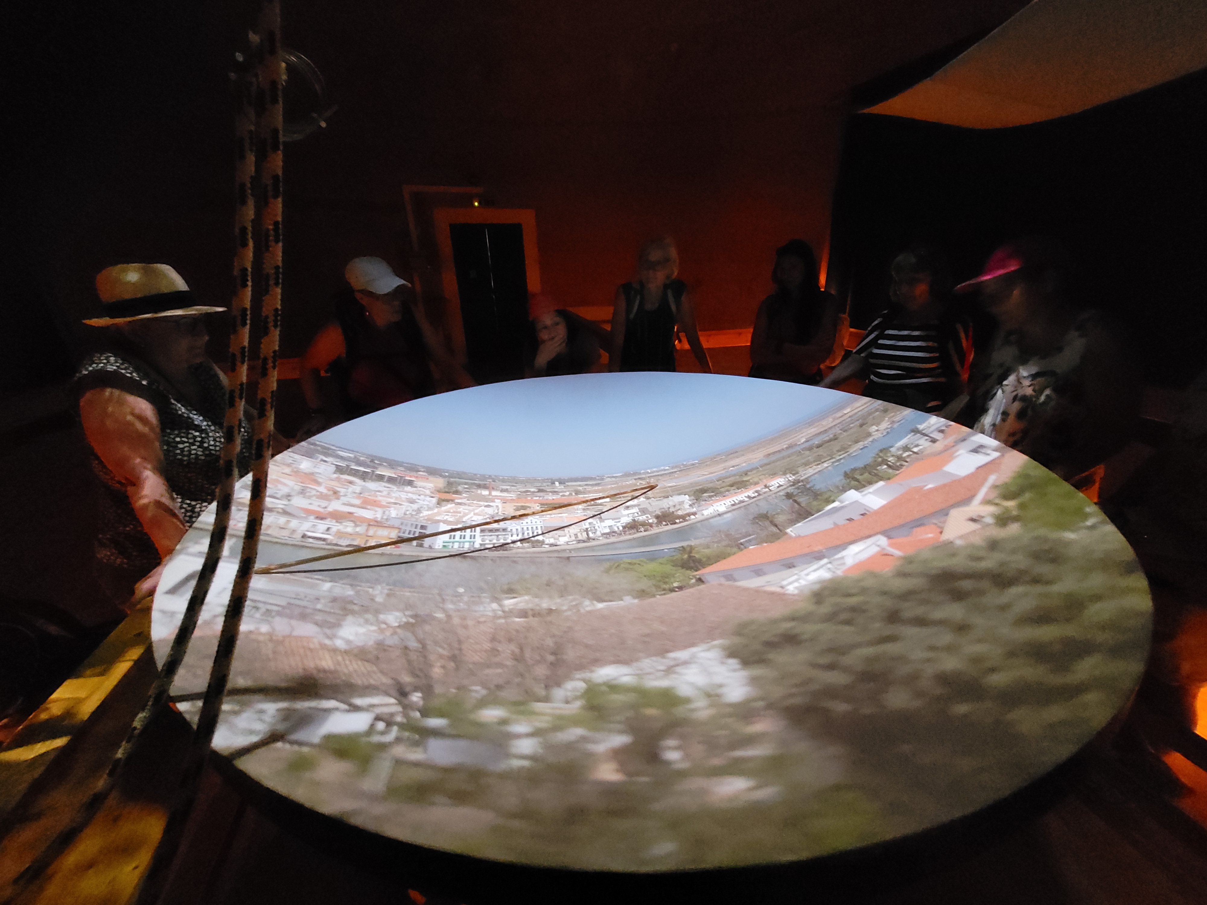 You walk up into an old converted water tower and, with the help of a mirror and a big lens outside on the roof, you can see a live view of the city projected onto a large concave shaped round table. You can rotate the lens and even "zoom" in and focus and have a tour of the city from the guide.