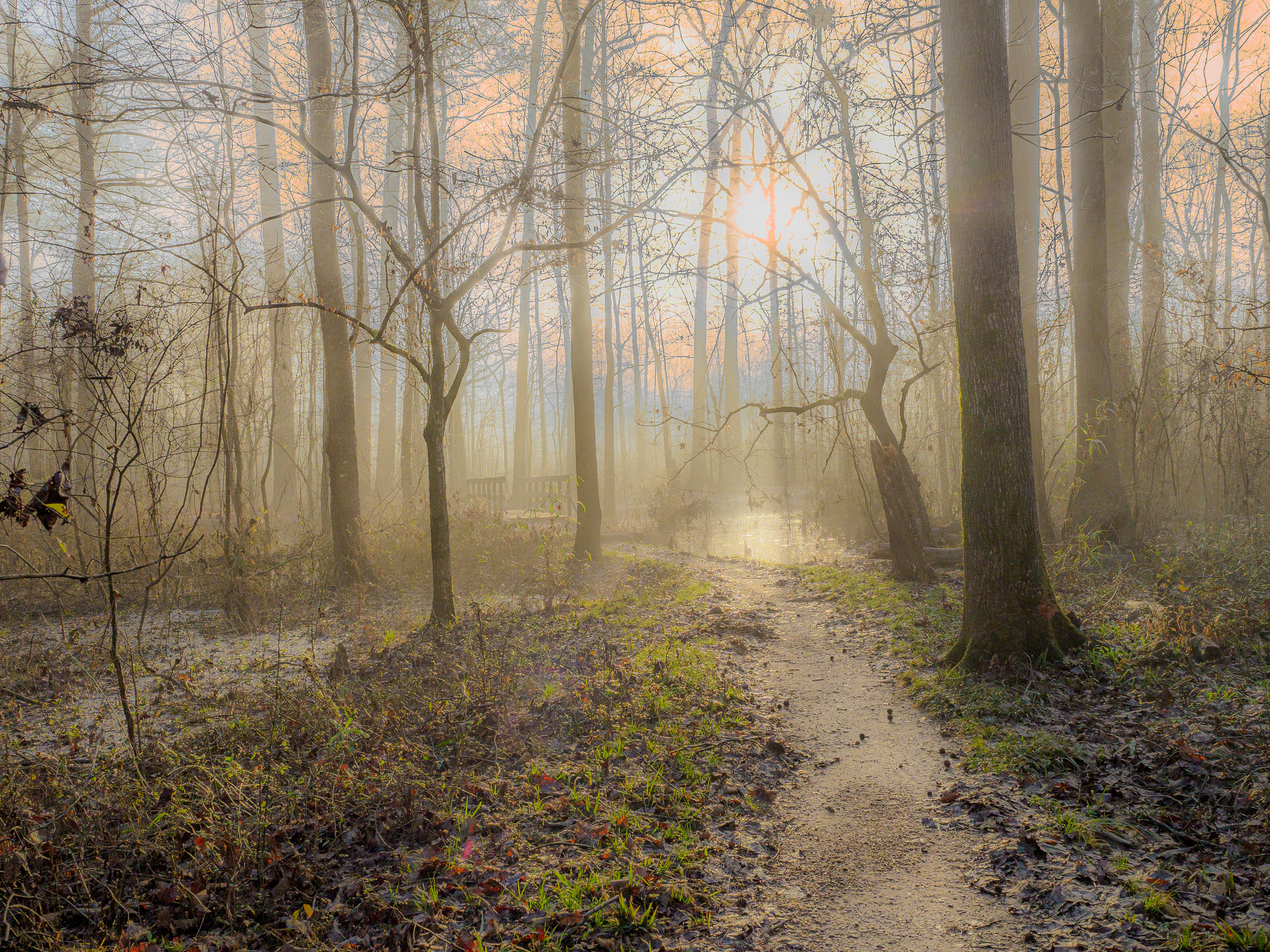 A subtle rendition that gently brings that path and the stream out of the darkness. Love the subdued color in the sky, in particular. It conveys the early winter morning feel so well.