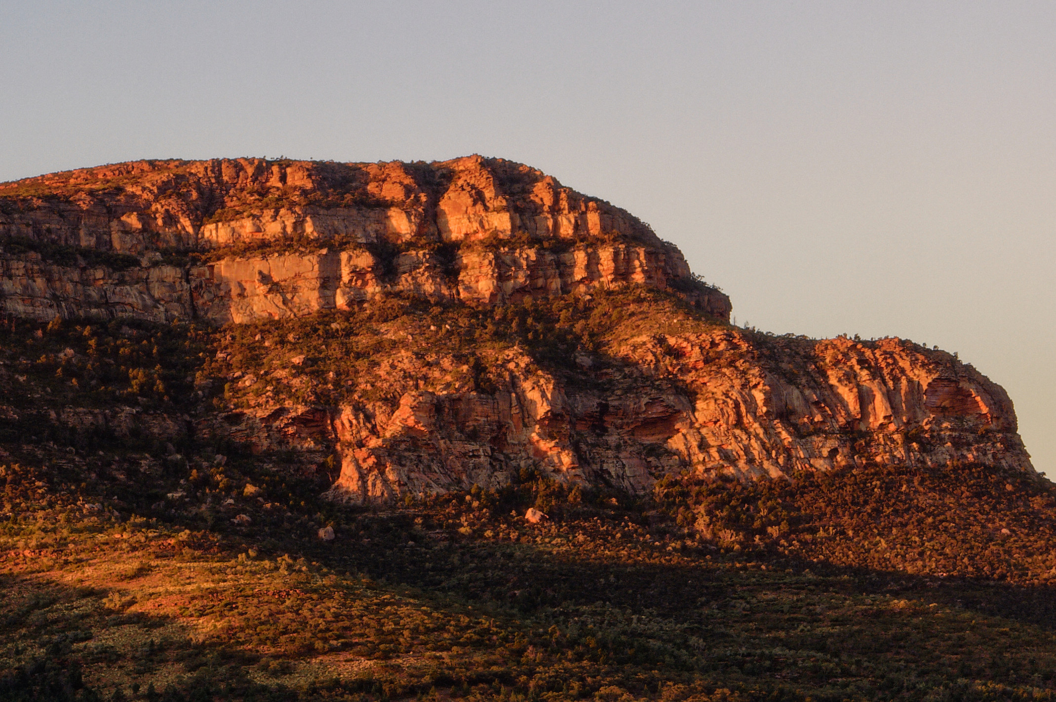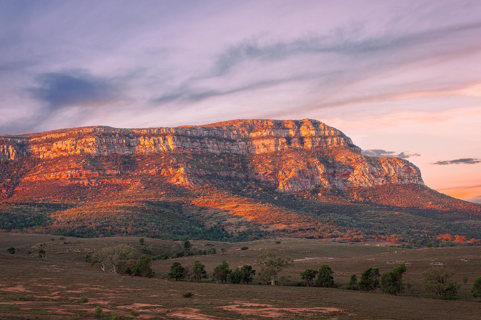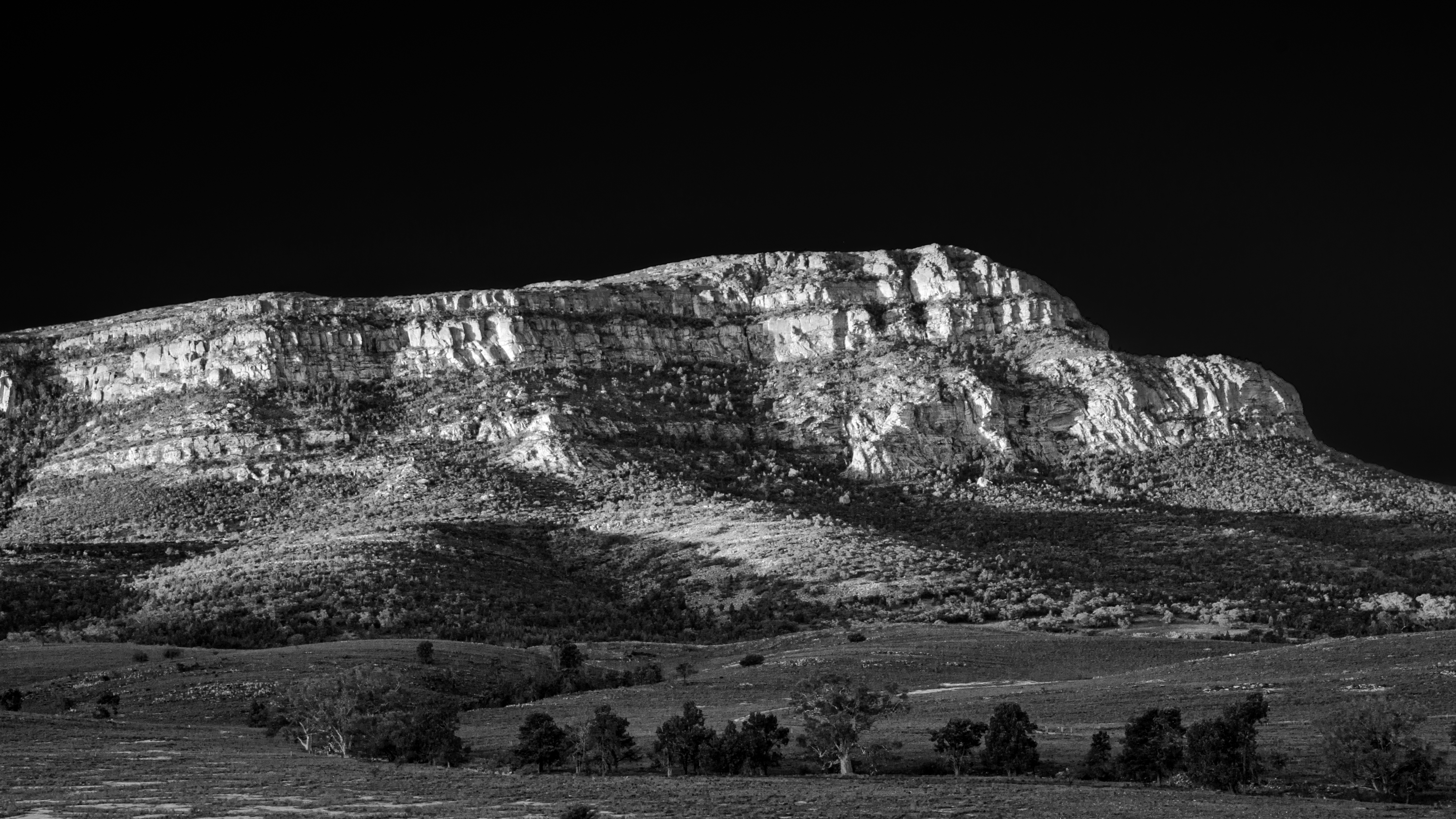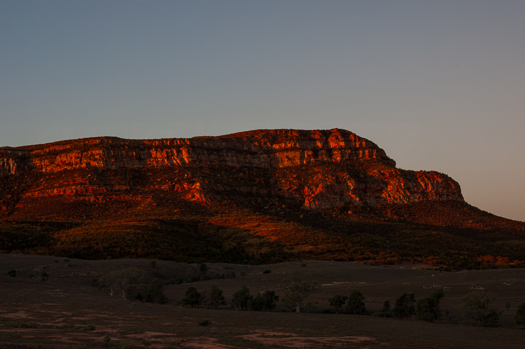 This is Rawnsley Bluff, on the edge of Wilpena Pound in the Southern Flinders Ranges in South Australia. This was taken at sunset but unfortunately, as far as the sky went especially, the sunset never really eventuated.
