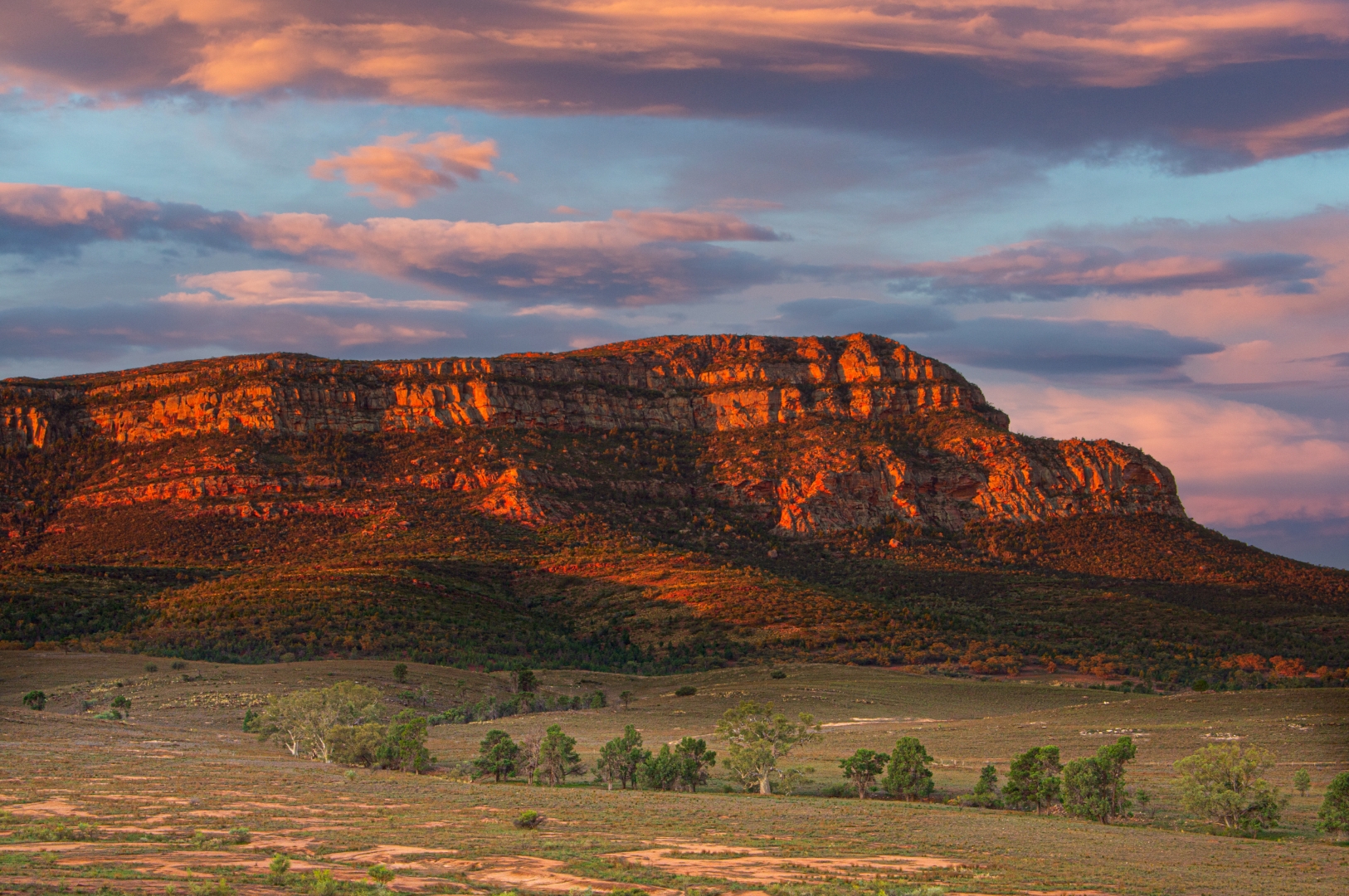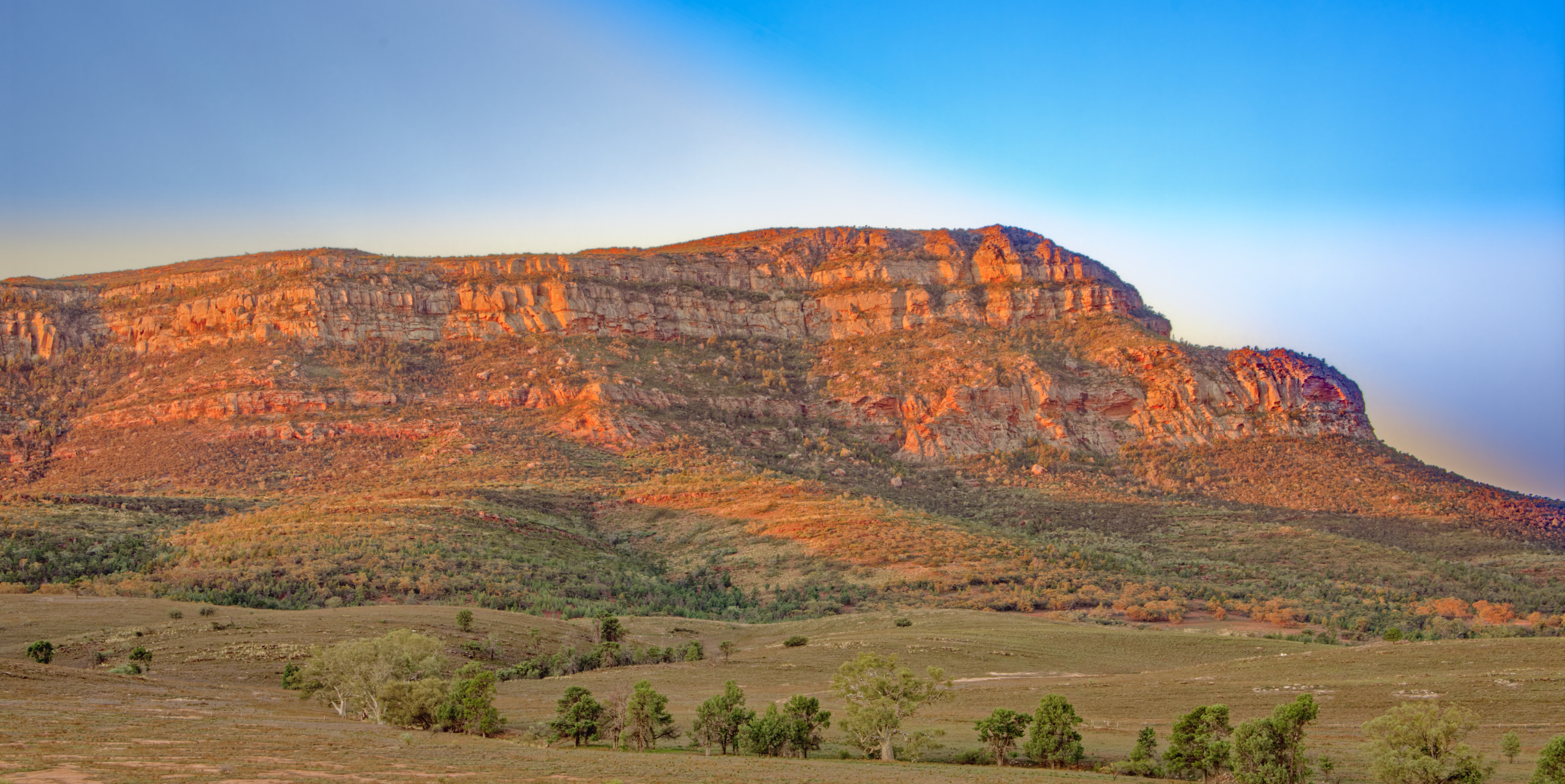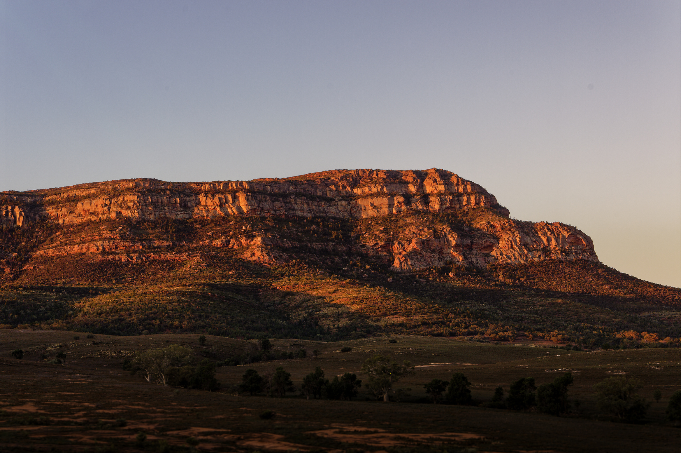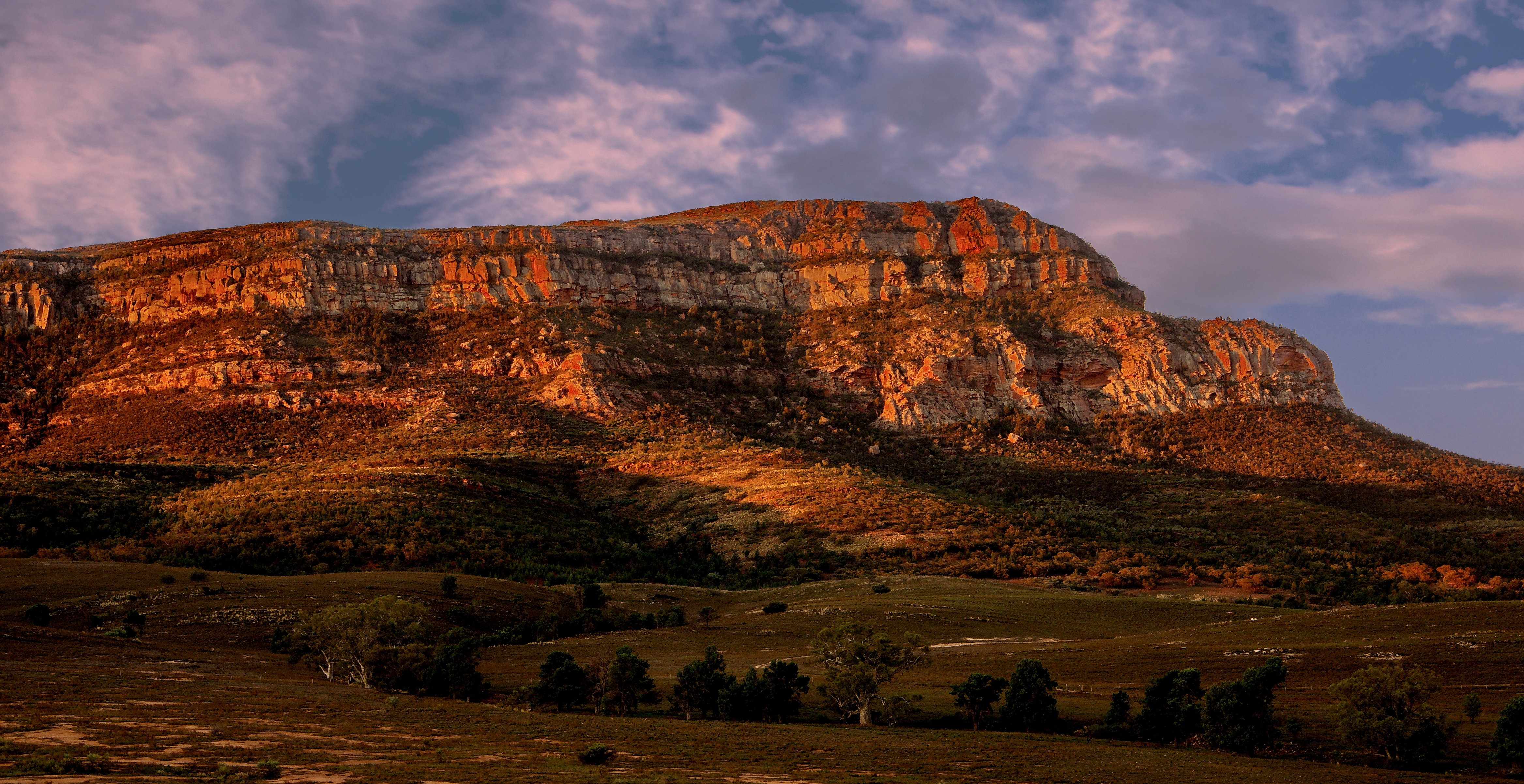 This is Rawnsley Bluff, on the edge of Wilpena Pound in the Southern Flinders Ranges in South Australia. This was taken at sunset but unfortunately, as far as the sky went especially, the sunset never really eventuated.