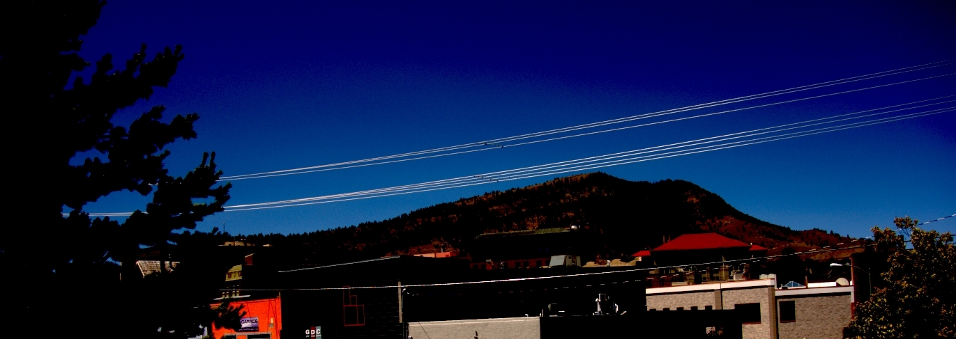 I'm not good at removing sagging wires - especially those on poles above the street, so I went the other way and brung them out. Raw converted to TIFF in RawDigger, then edited in the GIMP: