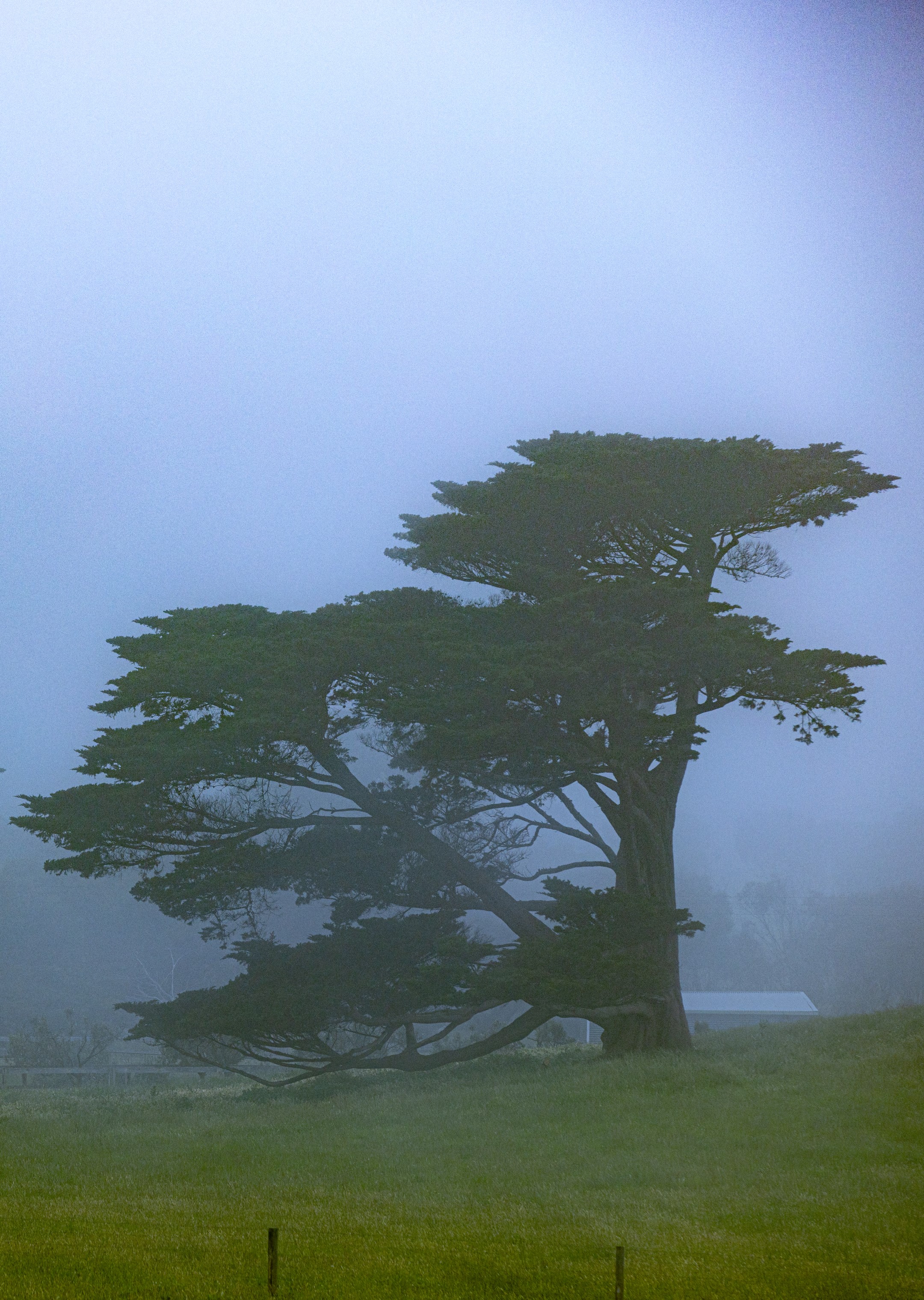 About this image: Trees in thick fog on a farm, rural Victoria, Australia. I have my own version of the image where I cloned out some structures, but you don't have to.