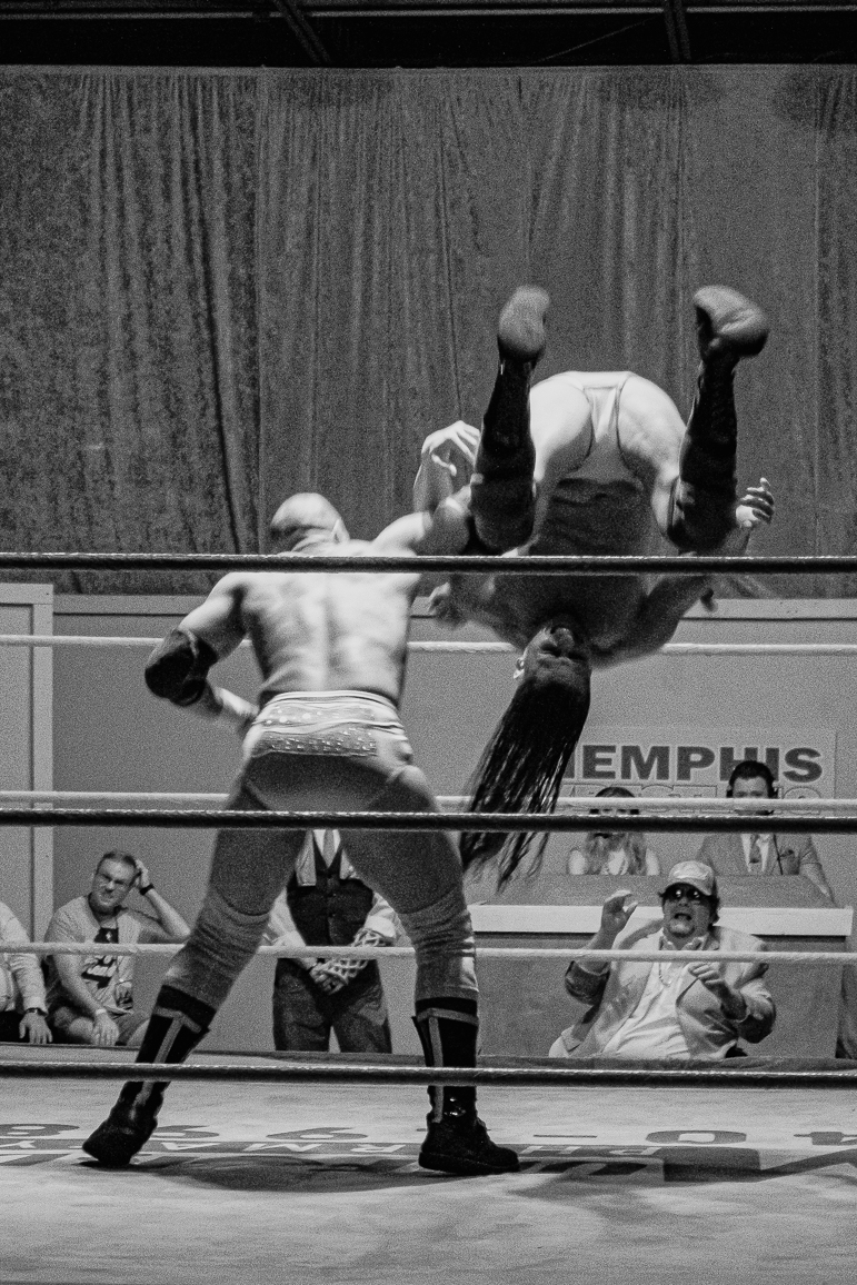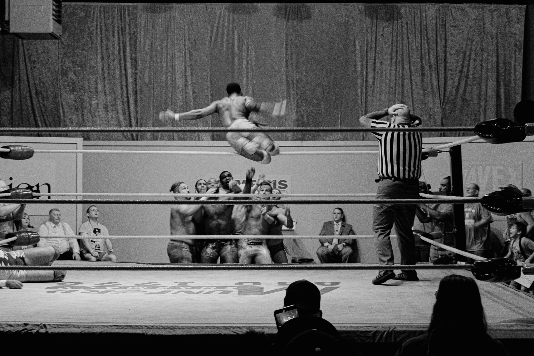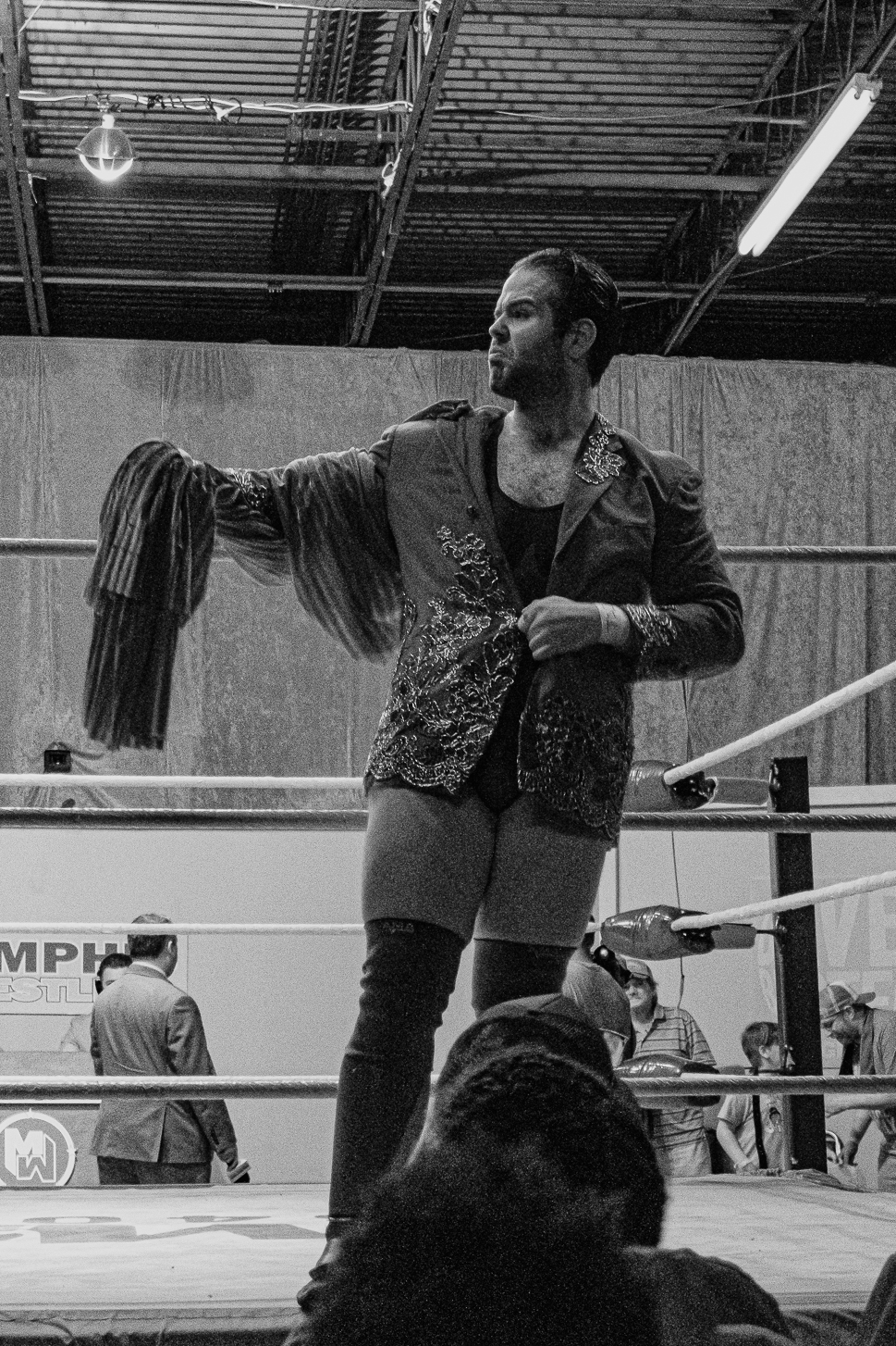 Took the modified EOS M to the wrasslin show with a 550nm filter. Didn't look too great. Focus didn't function well either because of the ring ropes mostly. Still, I thought they didn't look too bad in black and white.