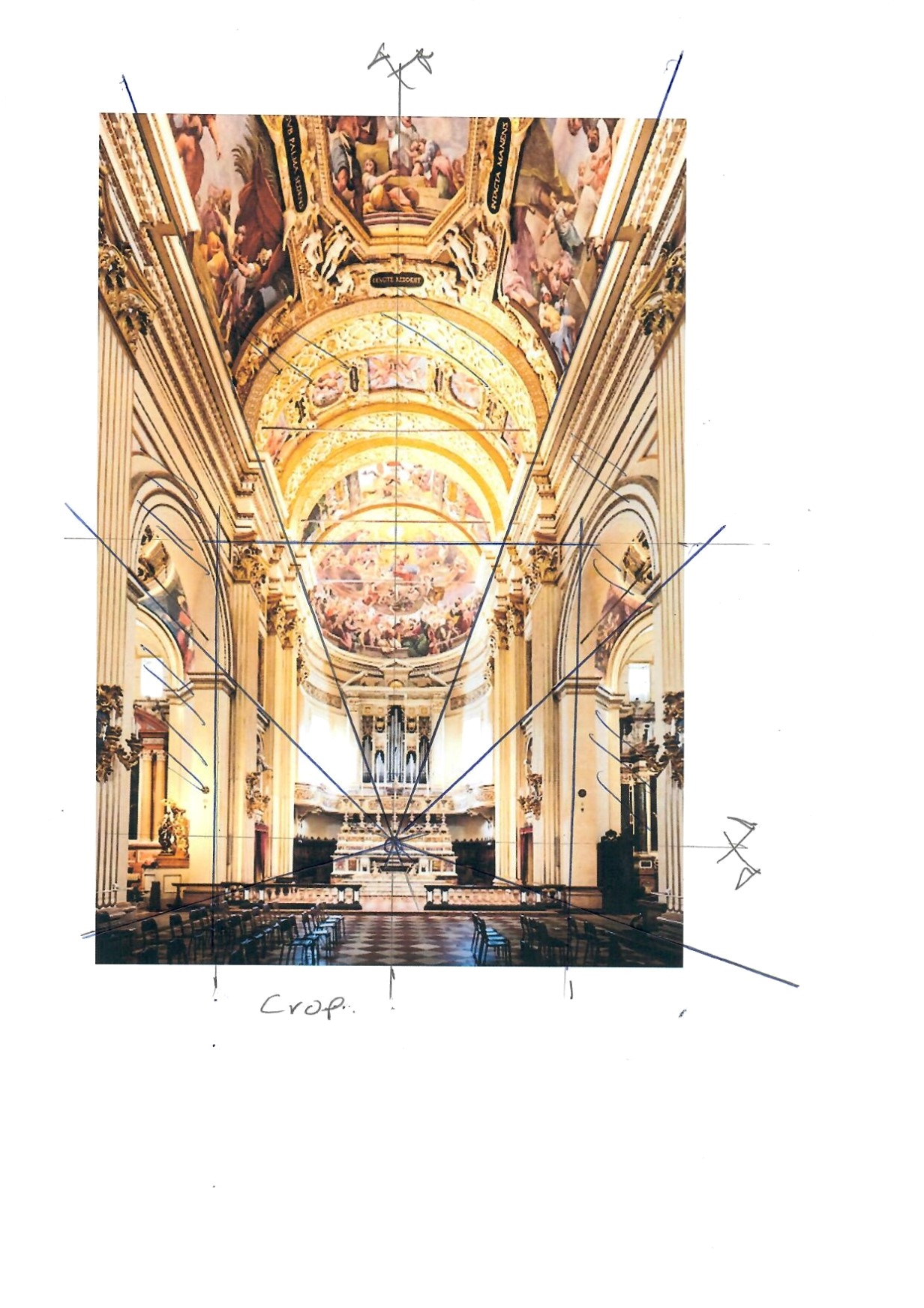 We can change the focal length of the lens by zooming in, or crop a larger image but the lead lines remain constant.