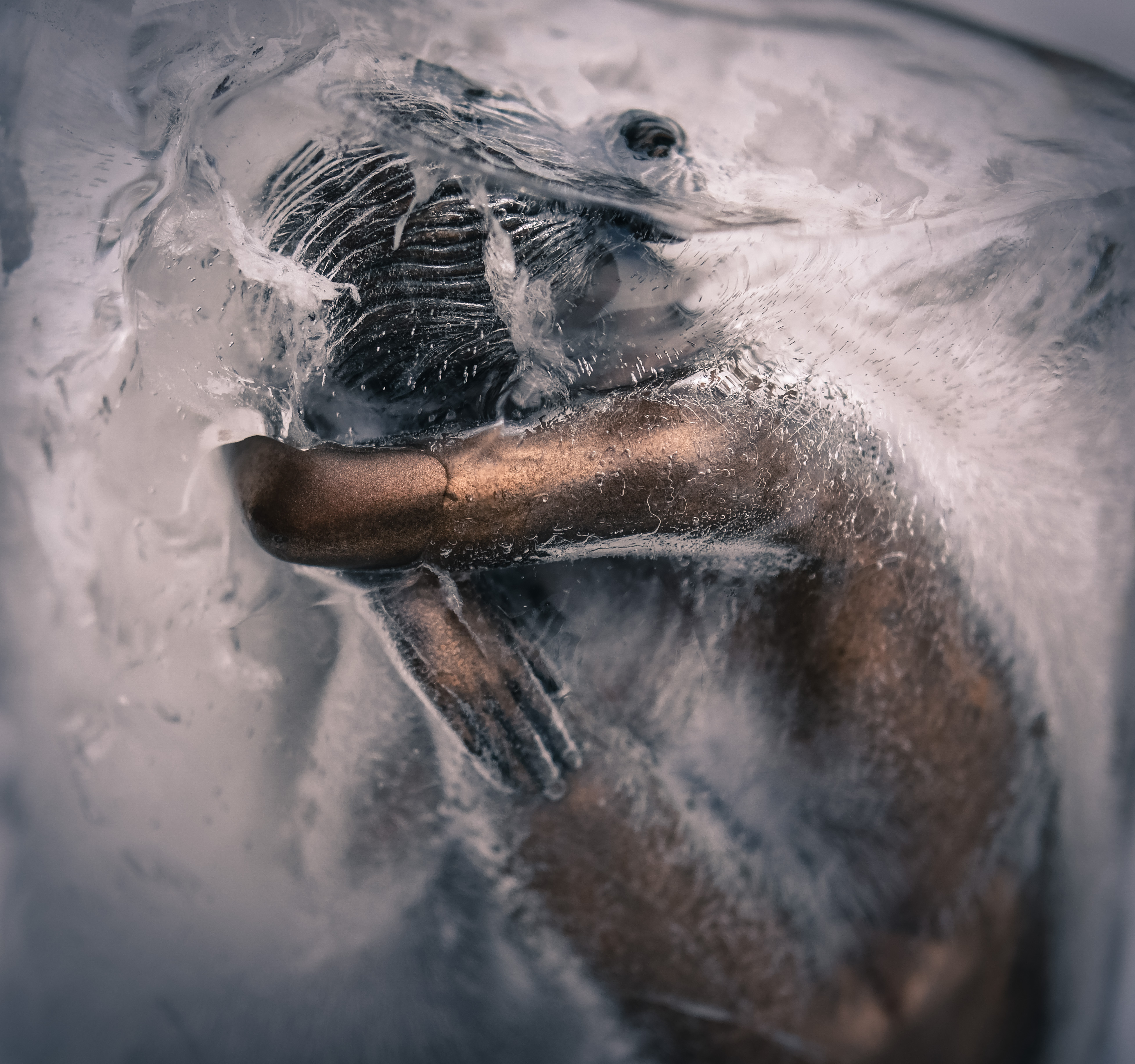 I guessed something like that, but it took me a while. It's the hair that gives it away. First I couldn't make it out at all, then I saw the hand and for a moment I thought...