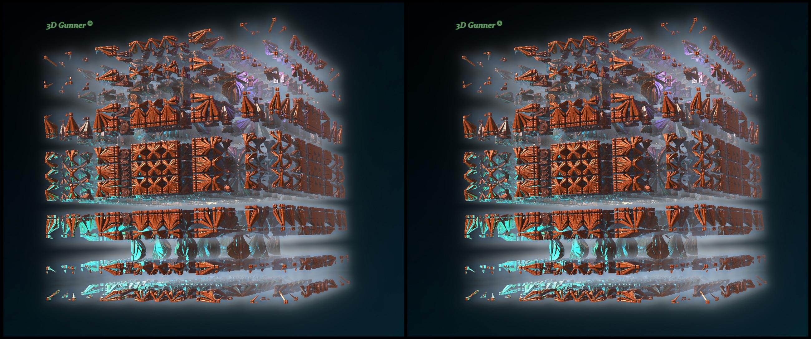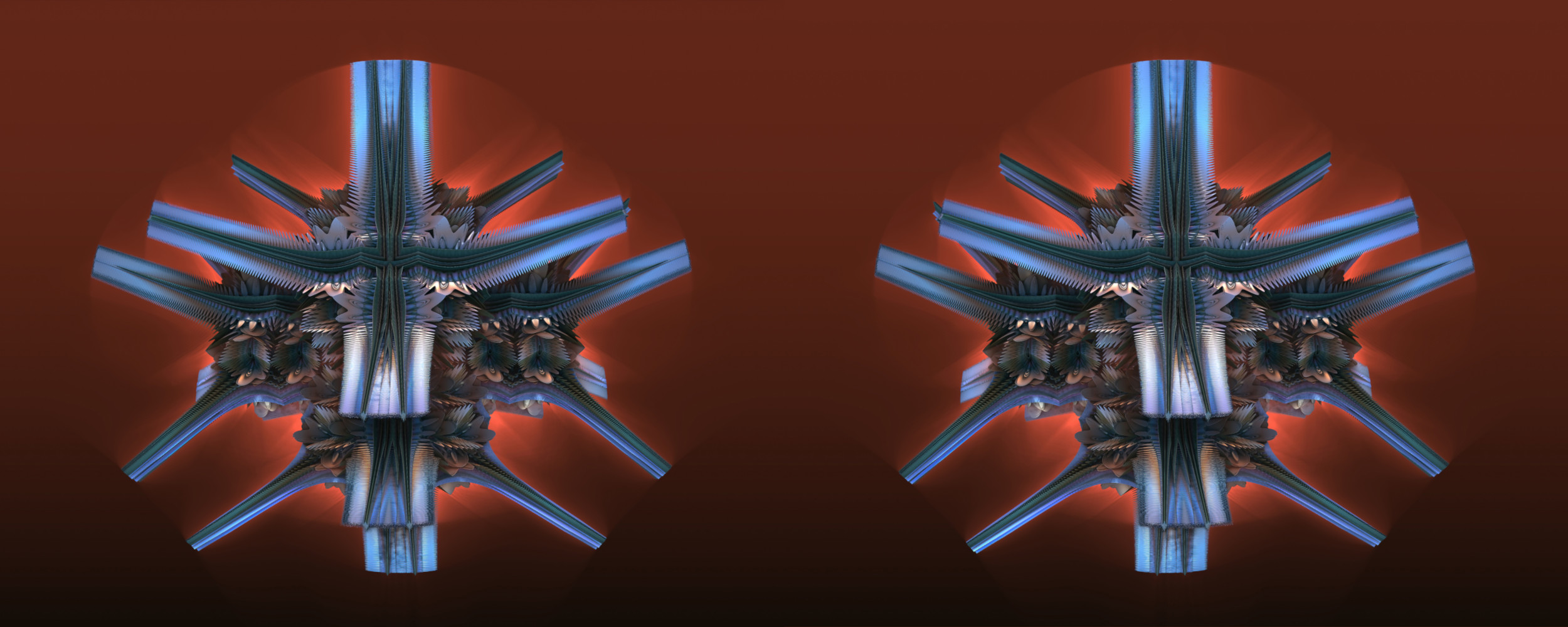 Fractal images look cool. Like these. Surprised it can take hours for an 8 core computer to render an image. Wish my eyes/brain processed cross images. Thought I could years ago.