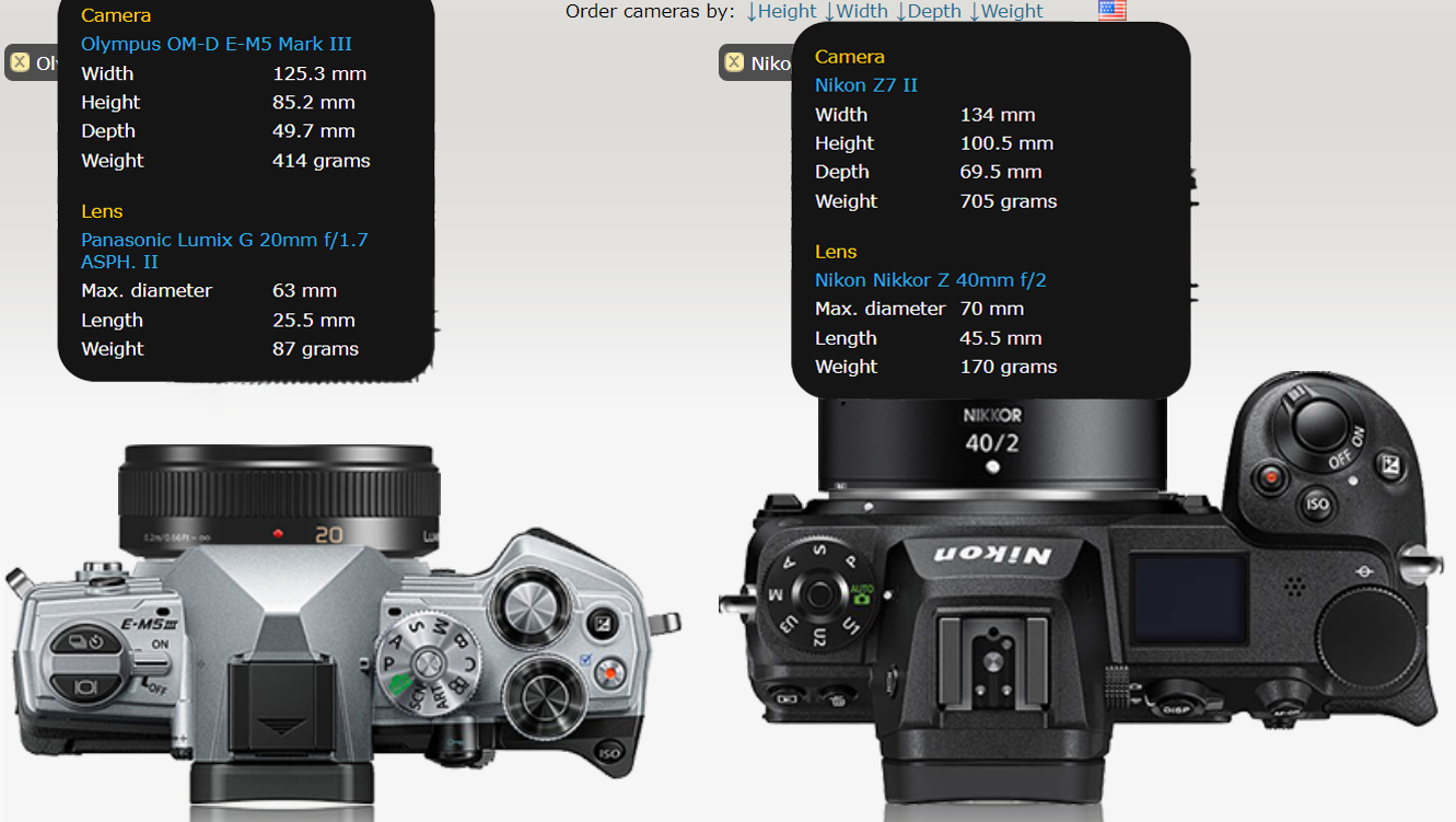 The thing is you may not want to cover all focal lengths every time you leave the house. If you want a small but still capable option a m43 camera with one of their small primes is a viable option. I have shot m43 and FF together since 2009 and see the entire collection of gear as one system each with their pros and cons. The folly comes when buying gear in each system to try and be equivalent . This is a comparison between my smallest m43 lens + camera option and my smallest Z mount plus lens option. Whilst you do sacrifice , DOF / subject isolation and total light gathering with the m43 kit it is far smaller far lighter and if at a social event far more wife friendly đ