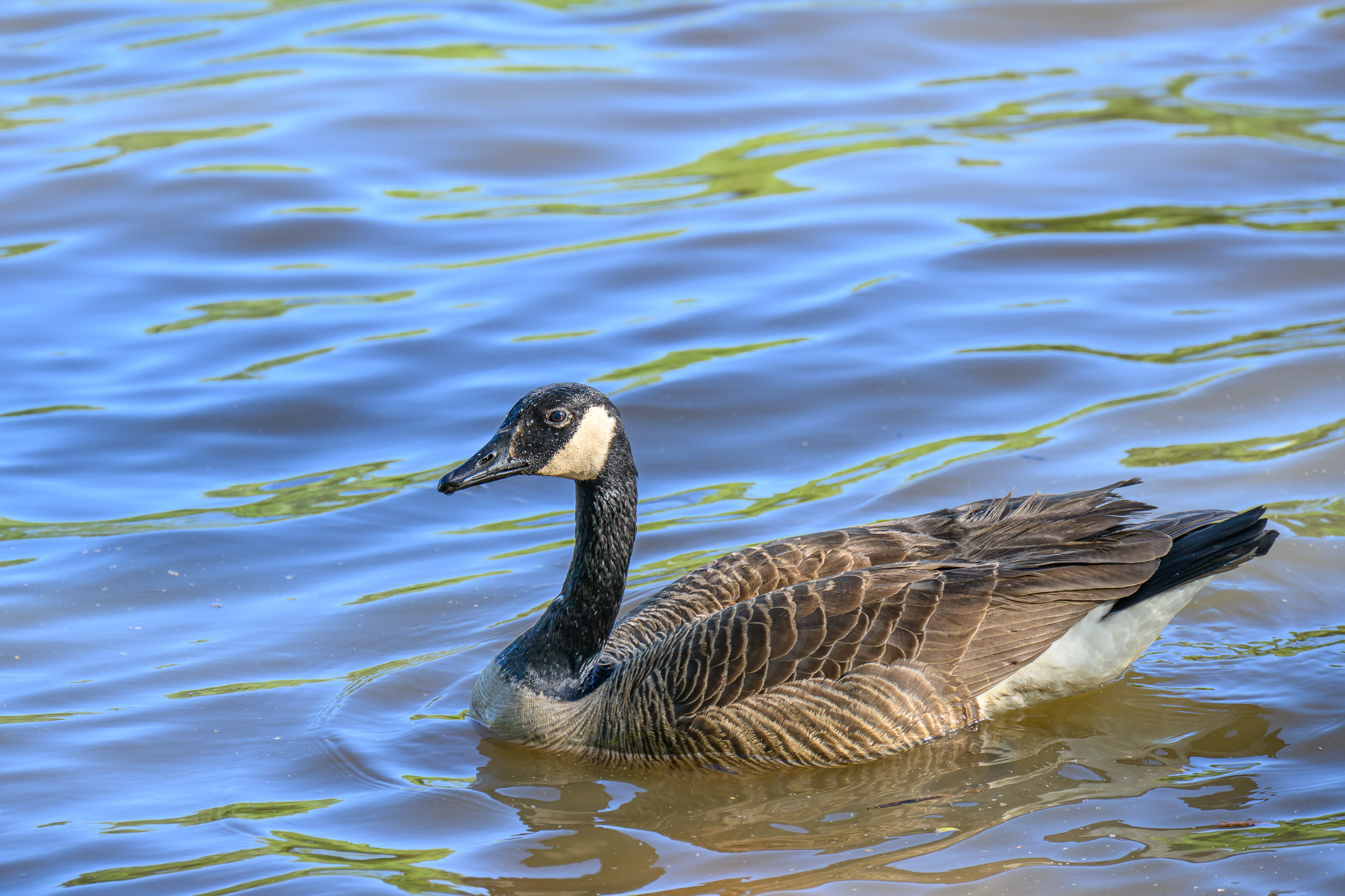 Lonely Canadian Goose. From time to time we take our grand kids to feed geese. Usually there are quite a few of them, but this time there was just one. And it was so lazy, it did not go for a piece of bread, but waited while a flow will bring it to it.