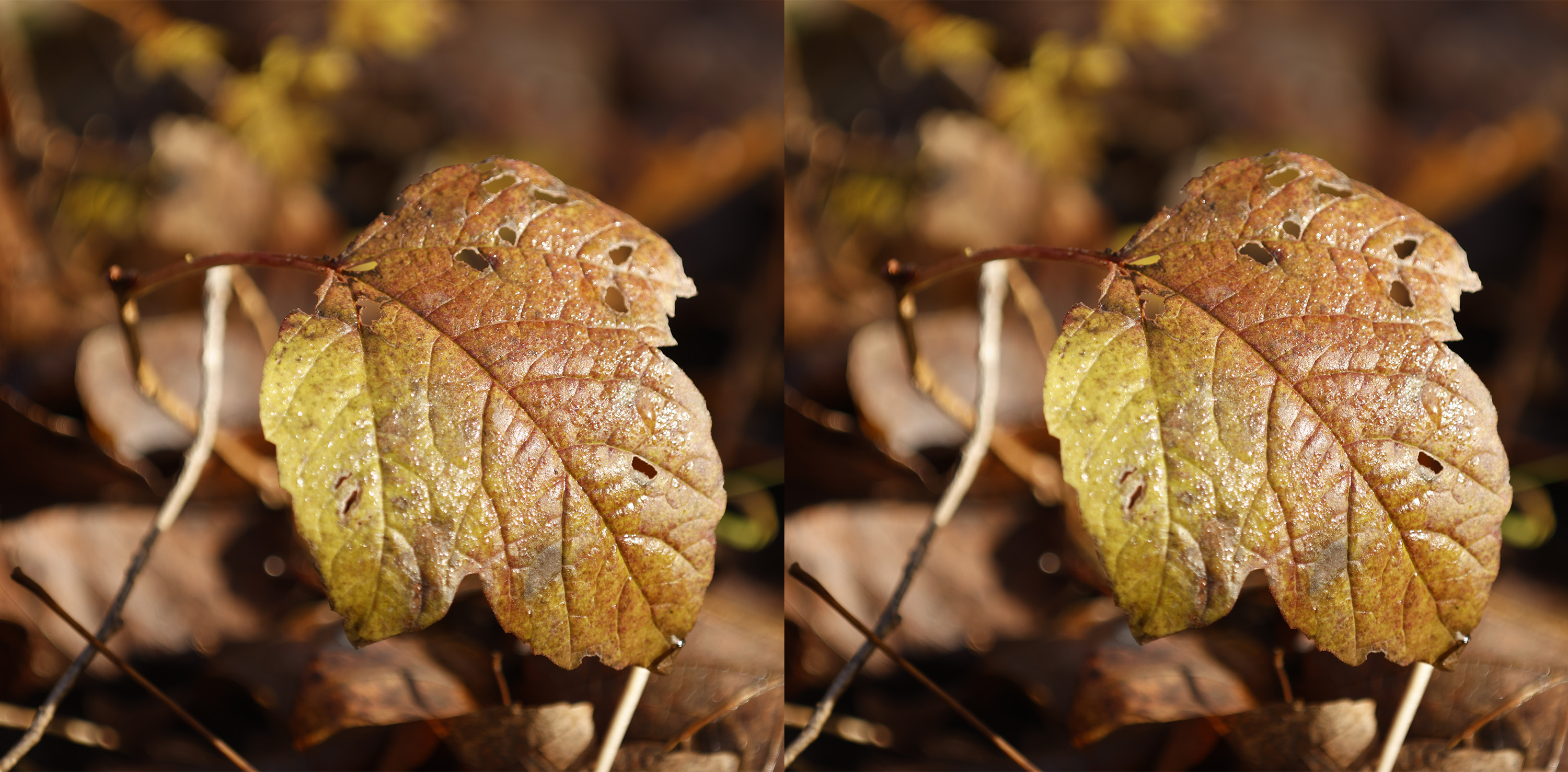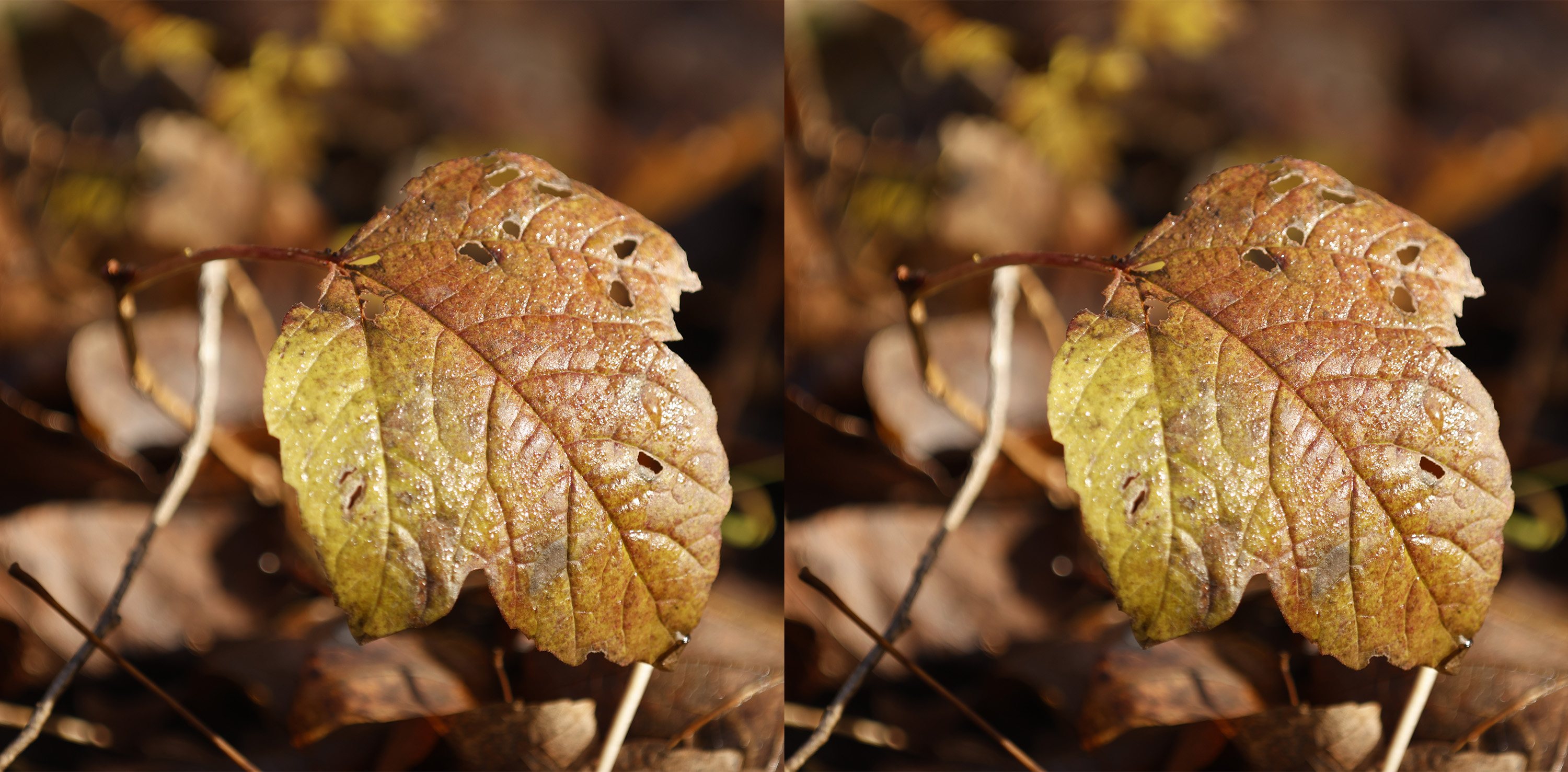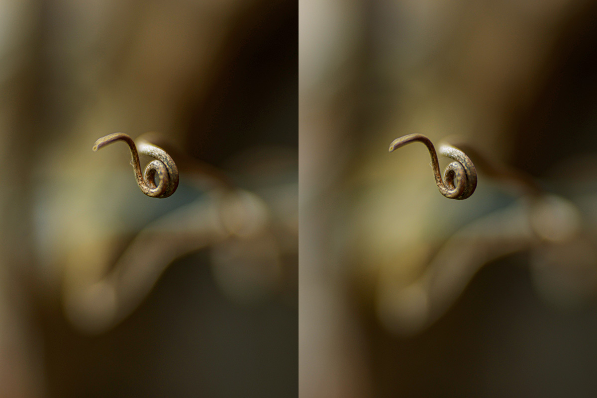 Interesting - viewing both cross-eyed the OOF twig is behind in the one and in front in the other ...