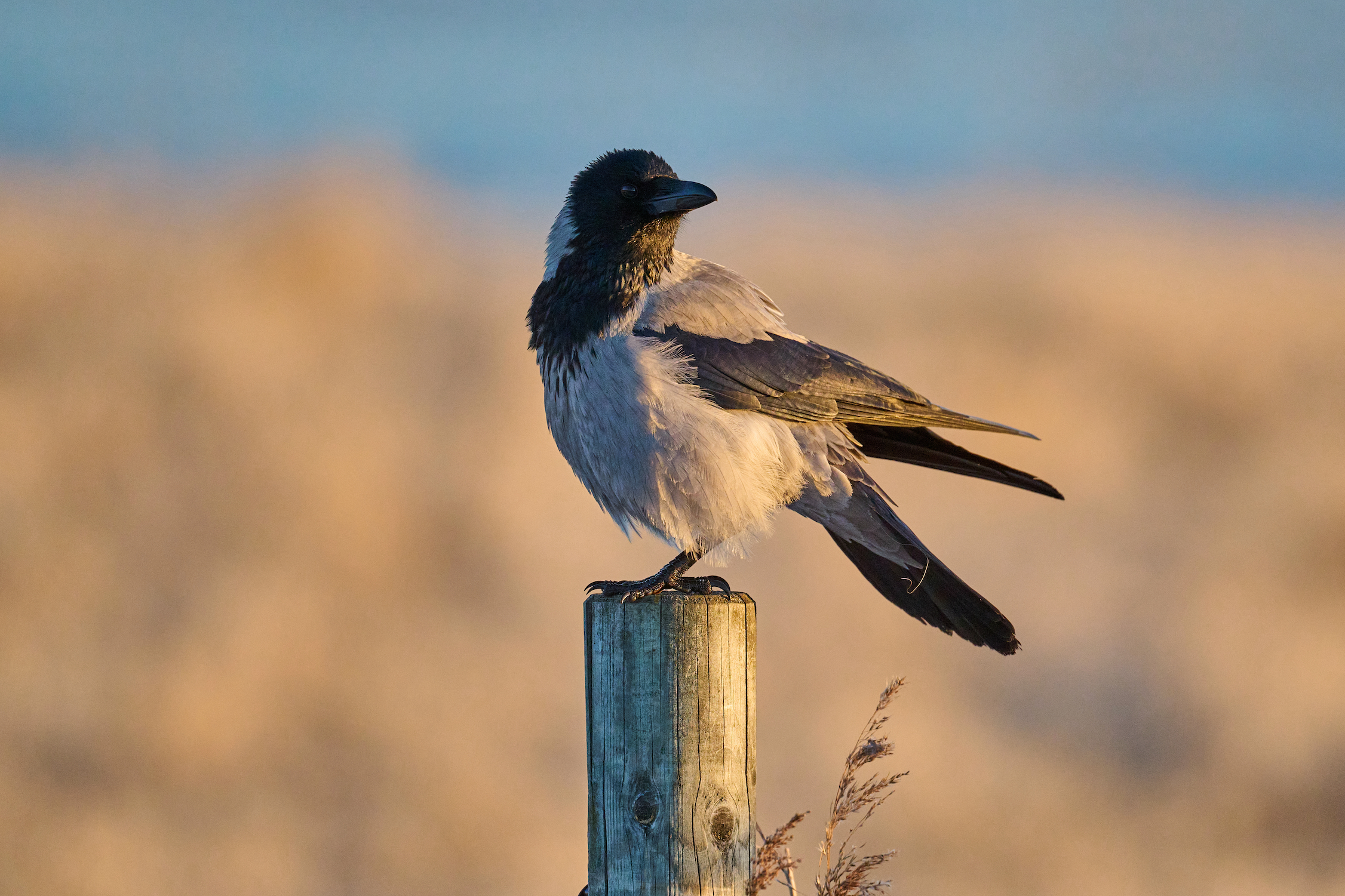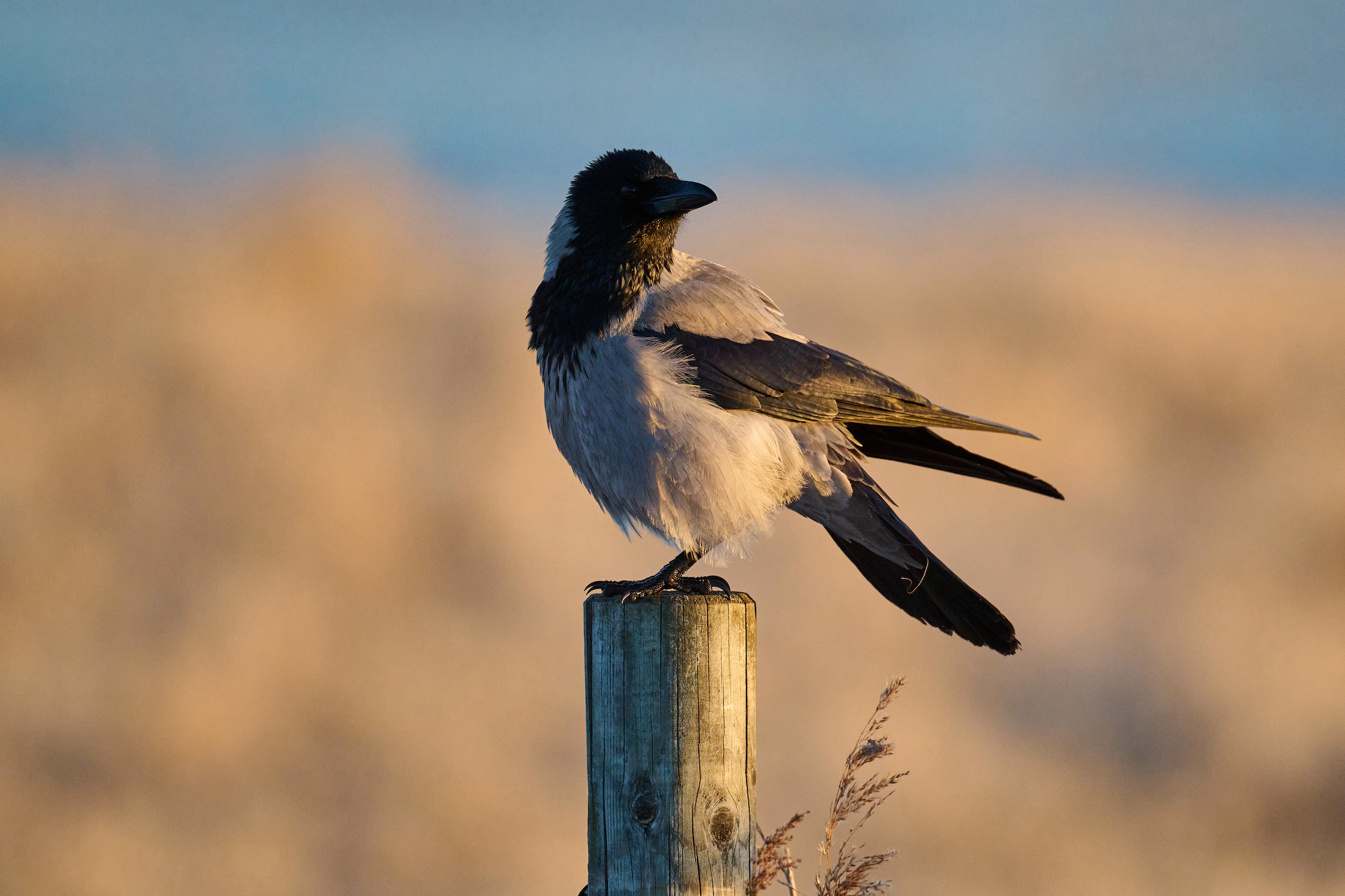 Lovely light on that bird. I've never seen a crow with such light plumage.