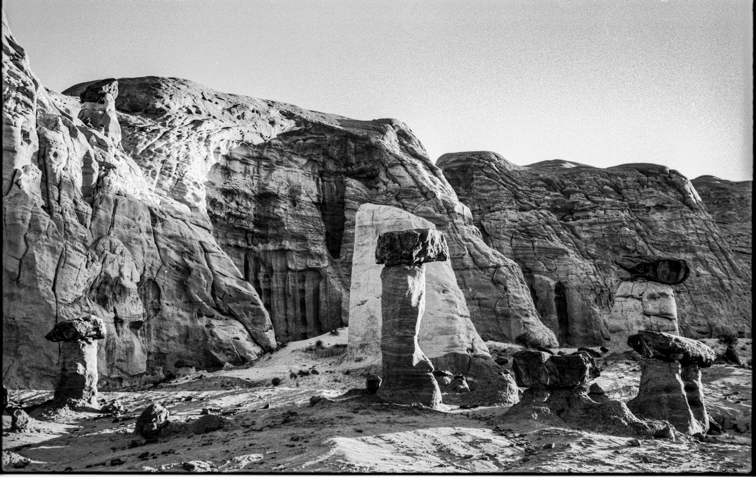 I was going through some old photos and found part of a strip on Ilford Delta 100 that I used in Grand Staircase Escalante. Ilford Delta 100 in DDX. Used a Voigtlander Bessa R2a and 35mm f/1.7 Ultron. I used a fair bit of Delta 100, FP4 and HP5 on this particular trip. I never fell in love with Delta and stopped using it after this