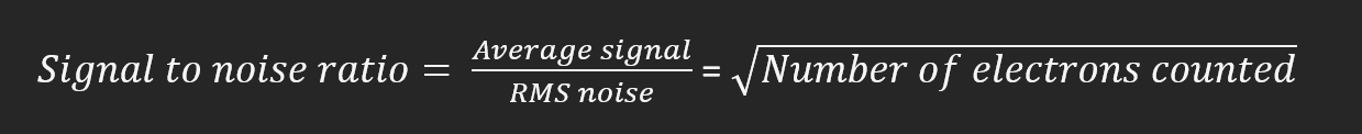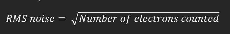 RMS noise = Number of electrons countedBut the equation does not say what the text is. The text says "The standard deviation of the electrons is also the root mean square (RMS) measure of the noise."