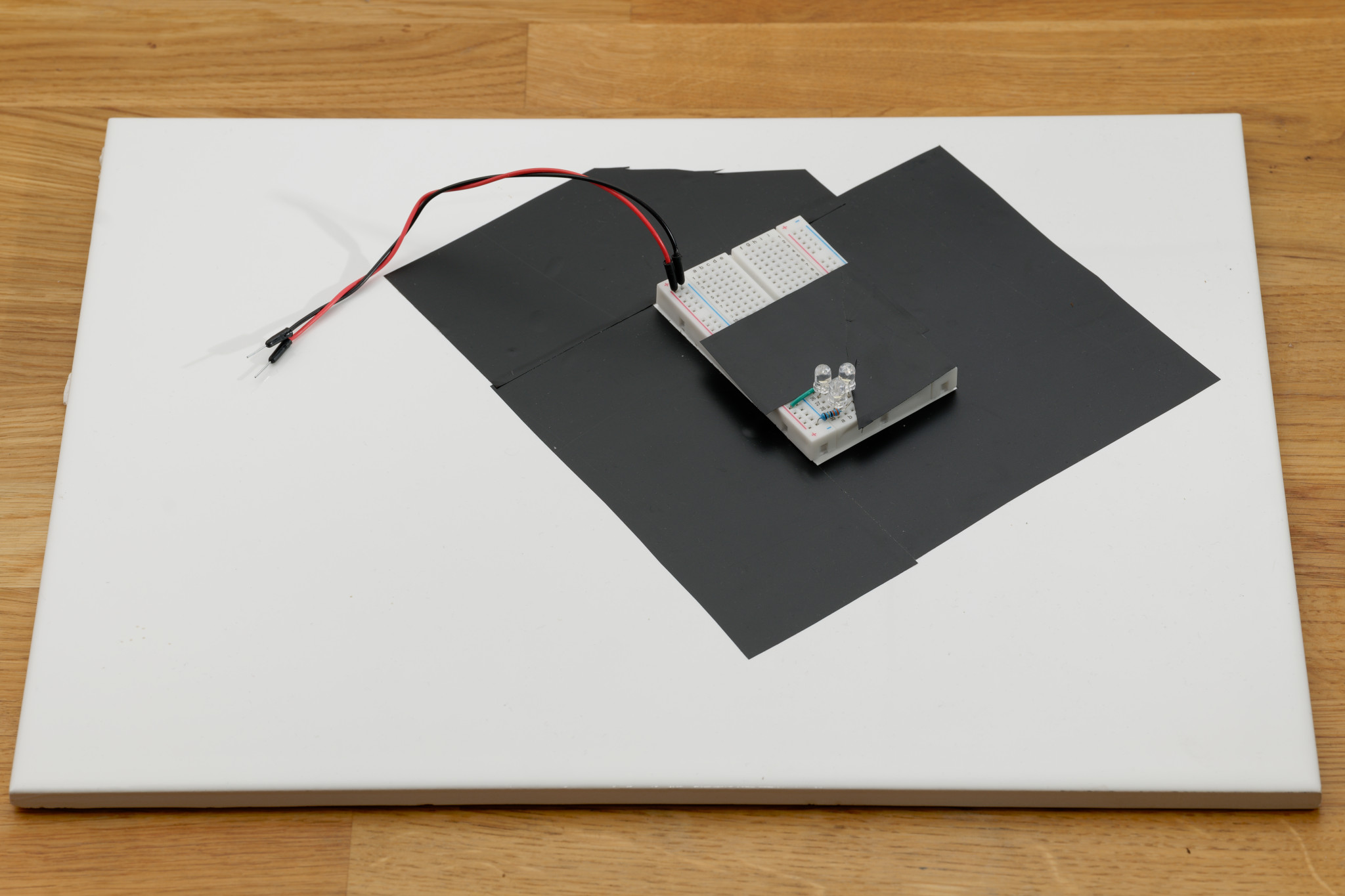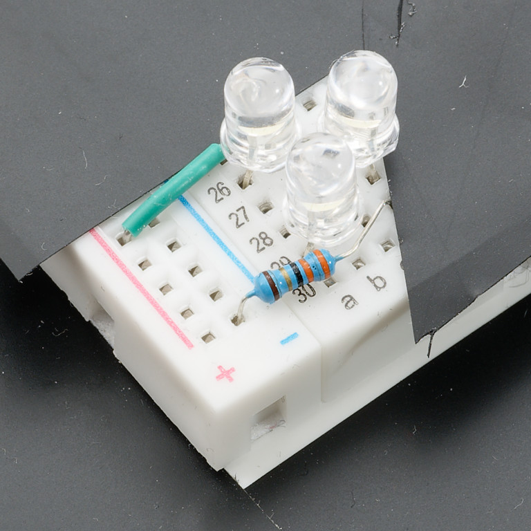 I have 3 white LEDs in series, in series with a 33R resistor on a breadboard. The LEDs are close together, in a triangle pattern.