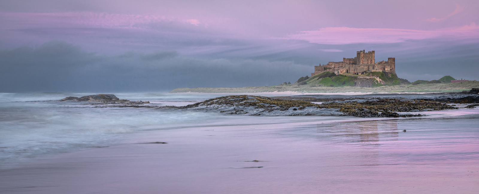 Taken half an hour after sunset but still with lovely colours and light glowing behind me producing soft Alpenglow on the castle and the clouds behind. I usually process my images around sunrise and sunset to look light and airy but on this occasion thought that darker was better. The Haar, sea fog, was starting to drift onshore telling me that it was time for food and beer. Ken