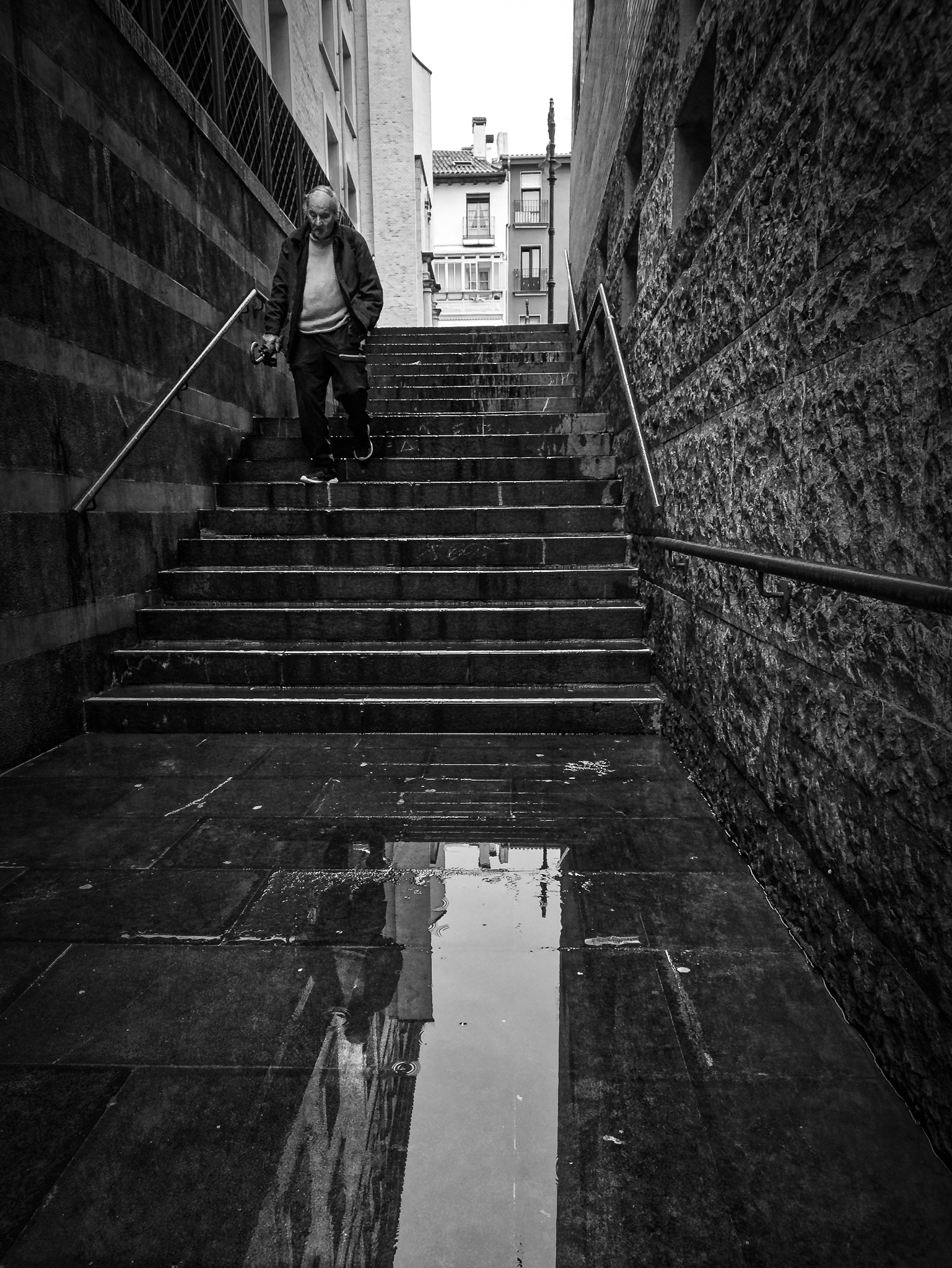 Nice capture, I like the water and the reflection. It also makes me feel, does he know what he's walking into?