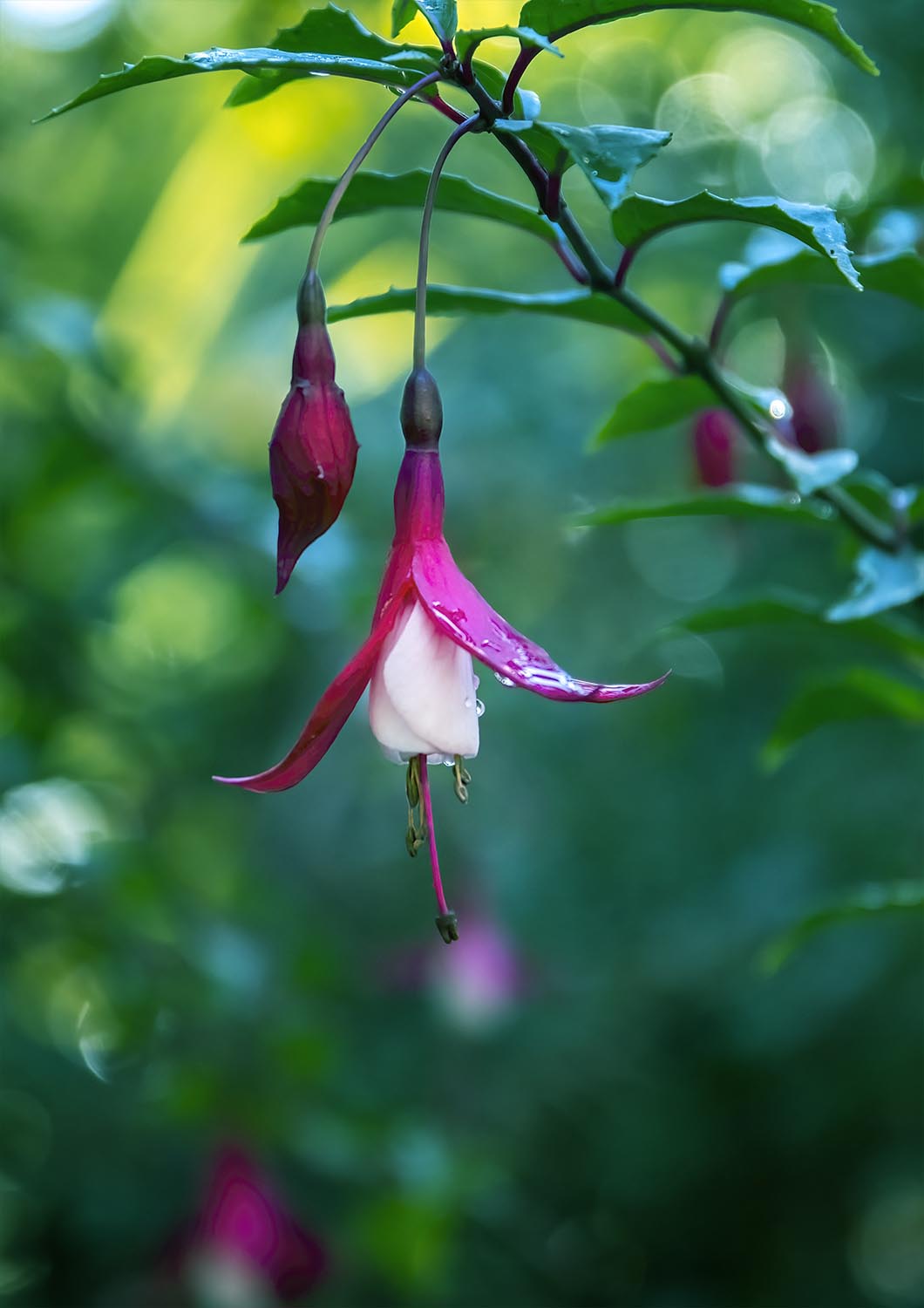 Another example of competition between the background and subject would be the tension created by the lower anther aligned with the purple oval in the background. Some of the round and strong bokeh shapes also add complexity detracting from any softer feelings.