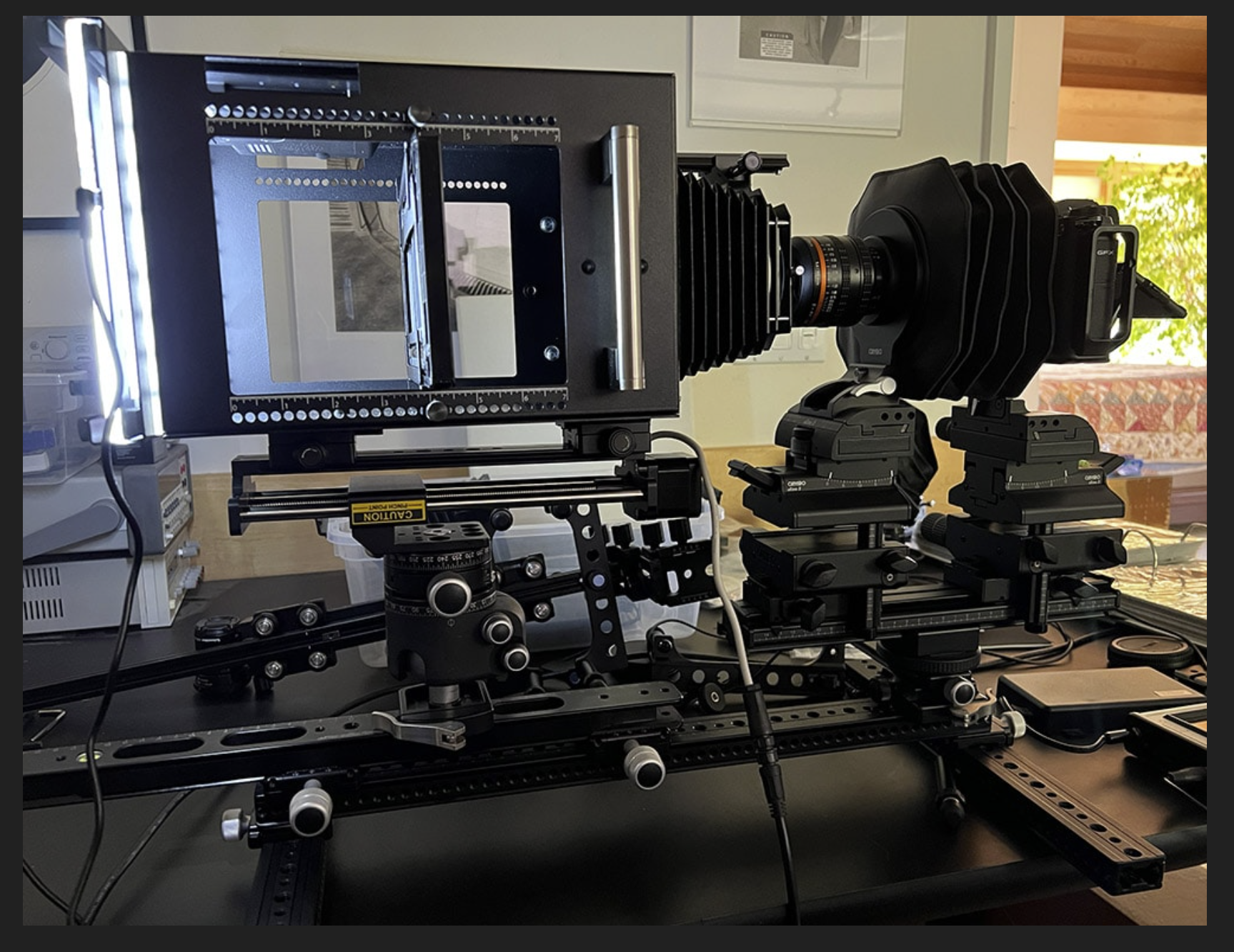 I'm using a lightbox and film holder in conjunction with a tripod and macro lens, with a remote shutter release and 2s delay.