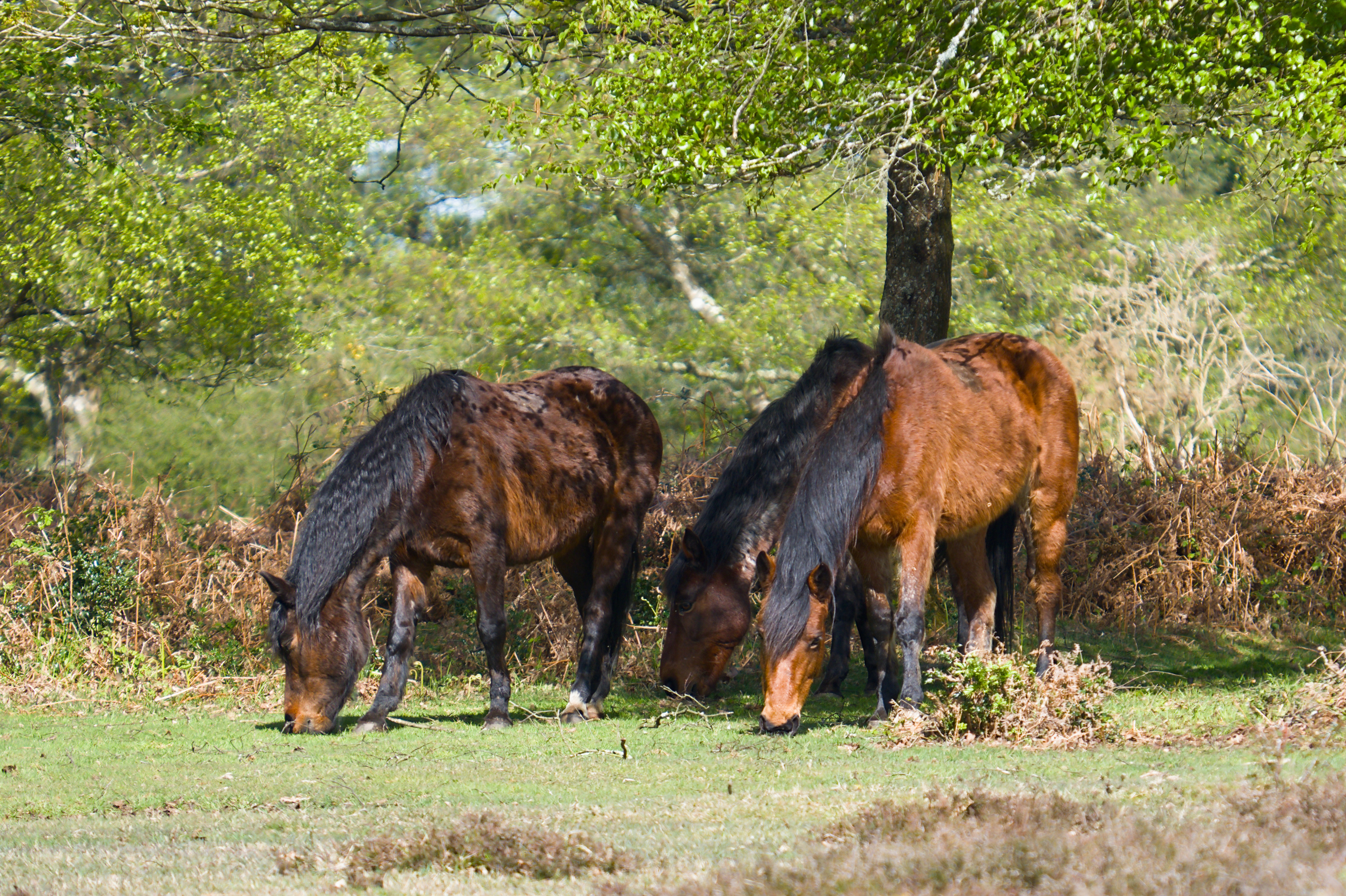 New Forest ponies enjoying a rare bit of sum near Fritham.