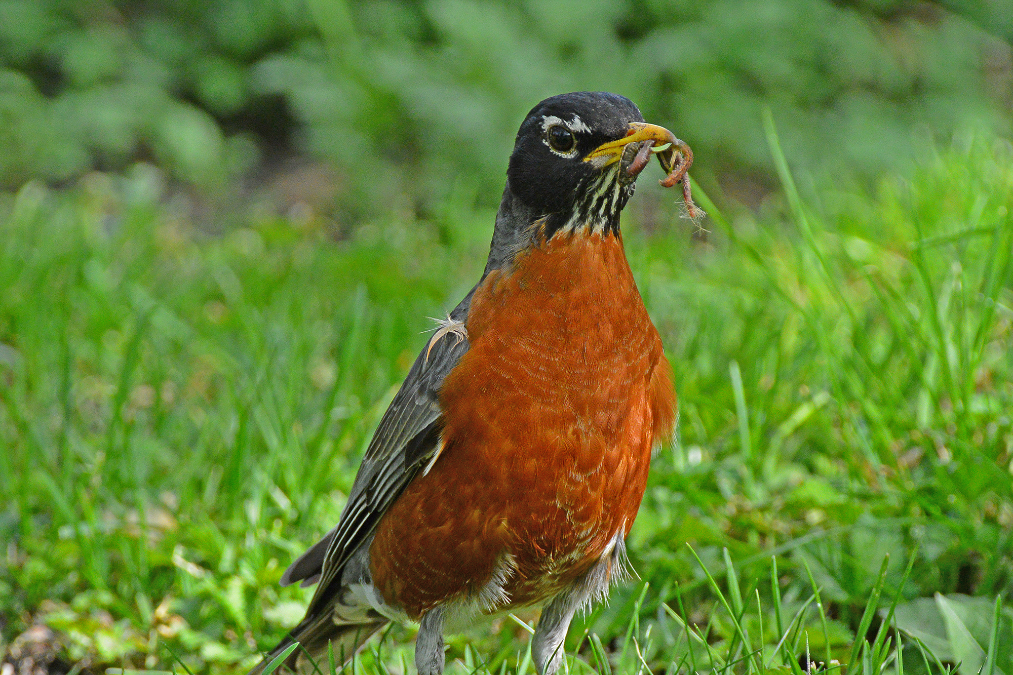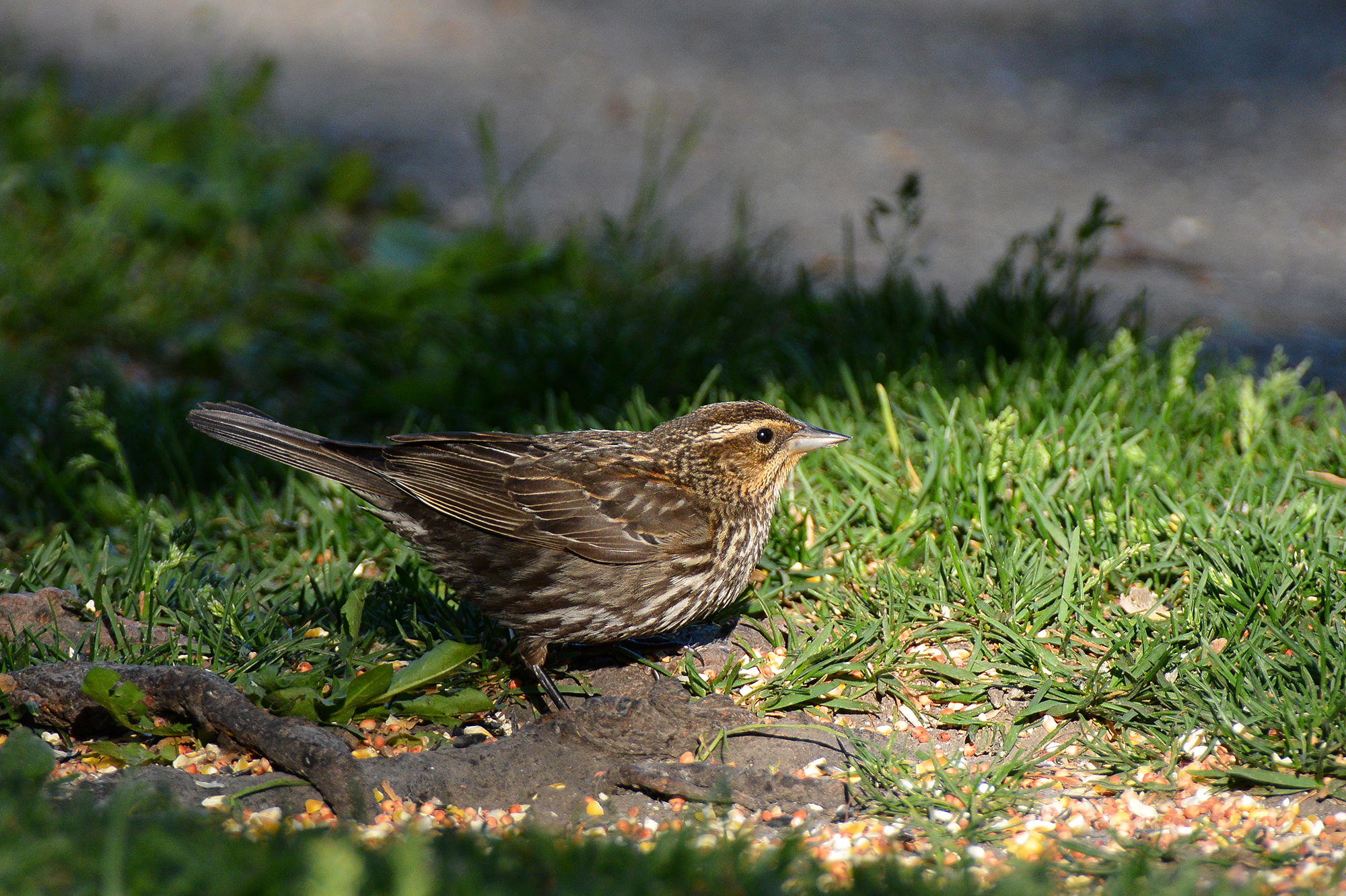 Good to see you getting time to exercise that lens and camera combo. A nice selection of birds: Mourning Dove, Common Grackle, female Red-winged Blackbird, Gray Catbird, Northern Cardinal, and American Robin.