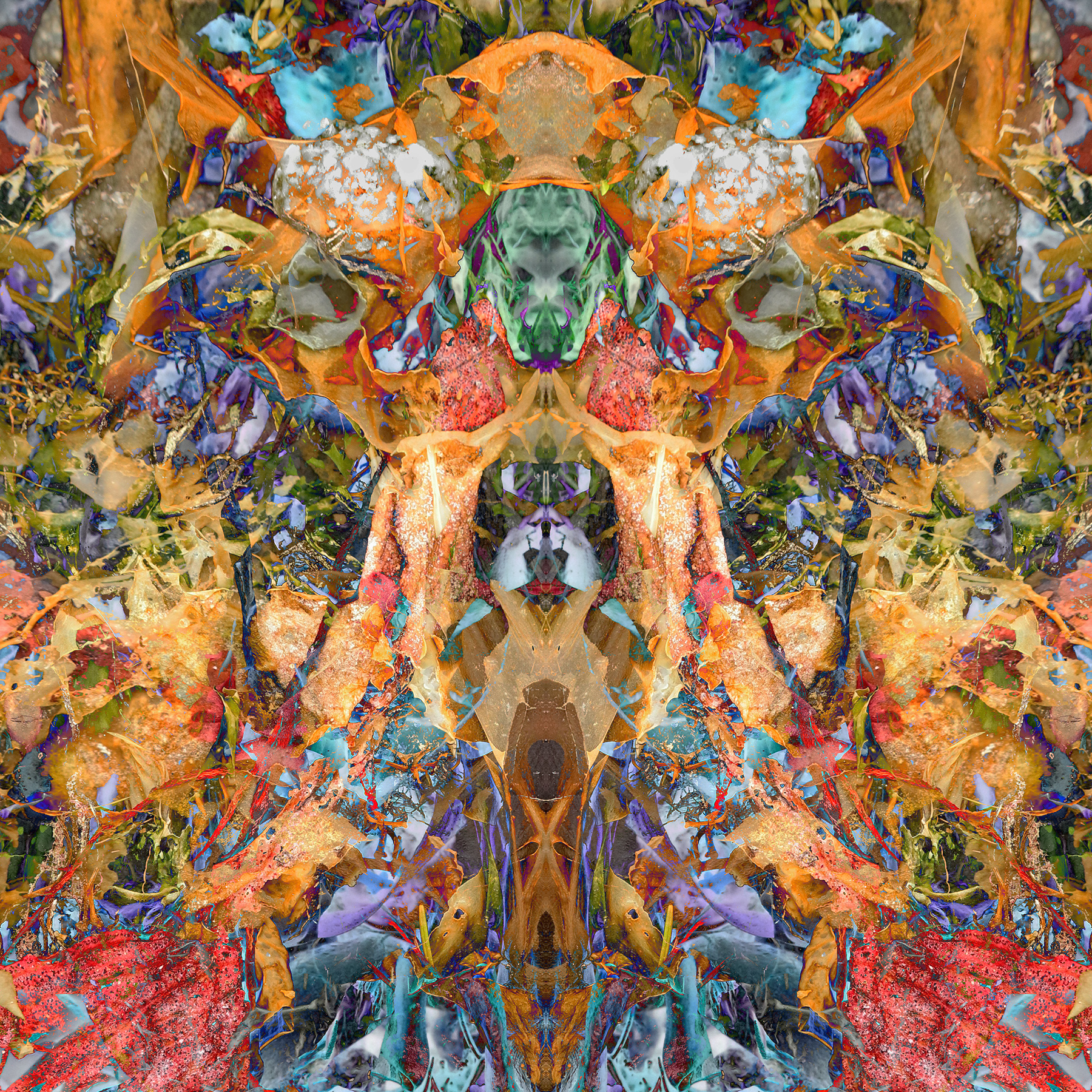 My Hidden Color abstracts often don't have anything that catches one's attention. But when I flip an image left-to-right and then blend it with the original, magic happens.