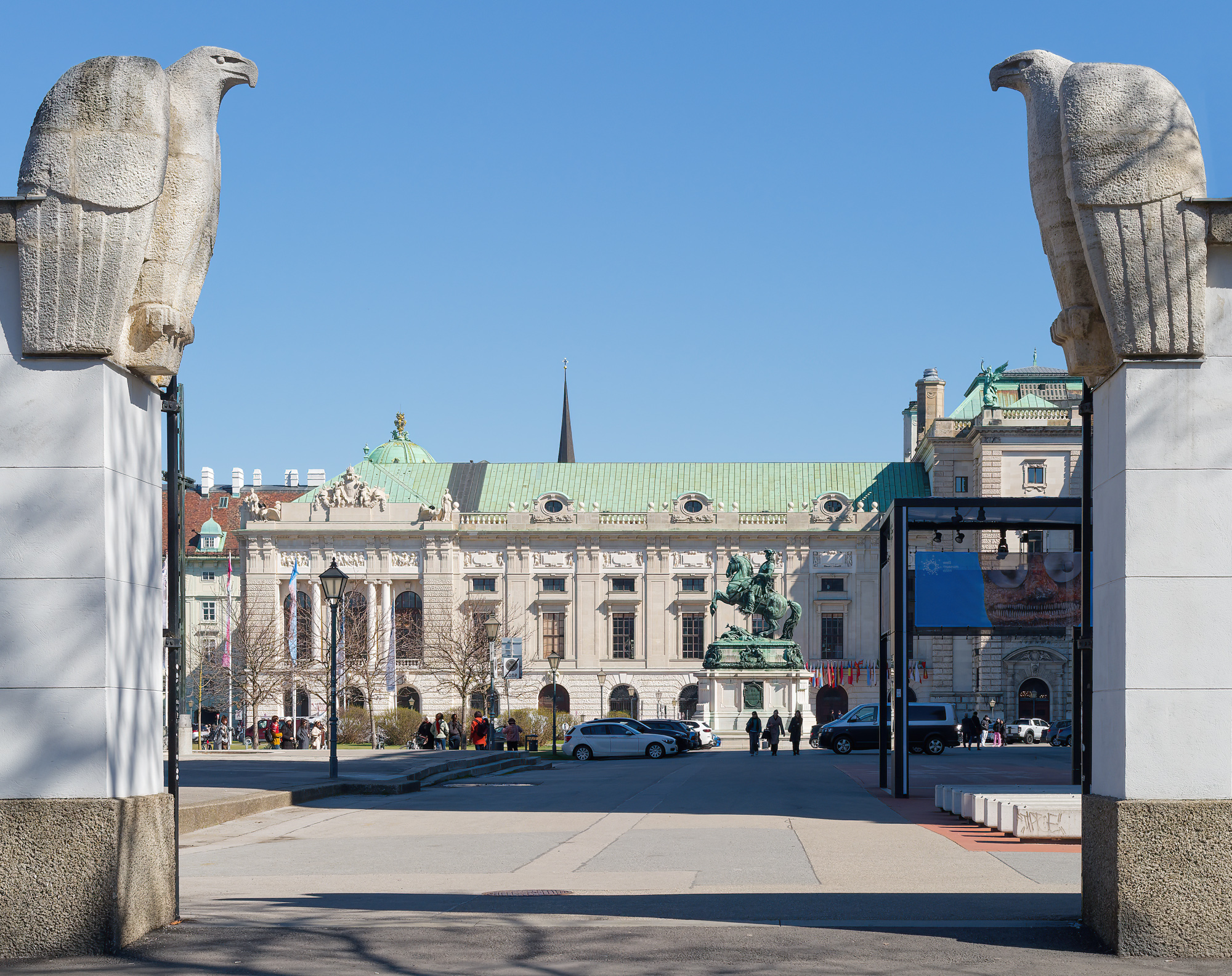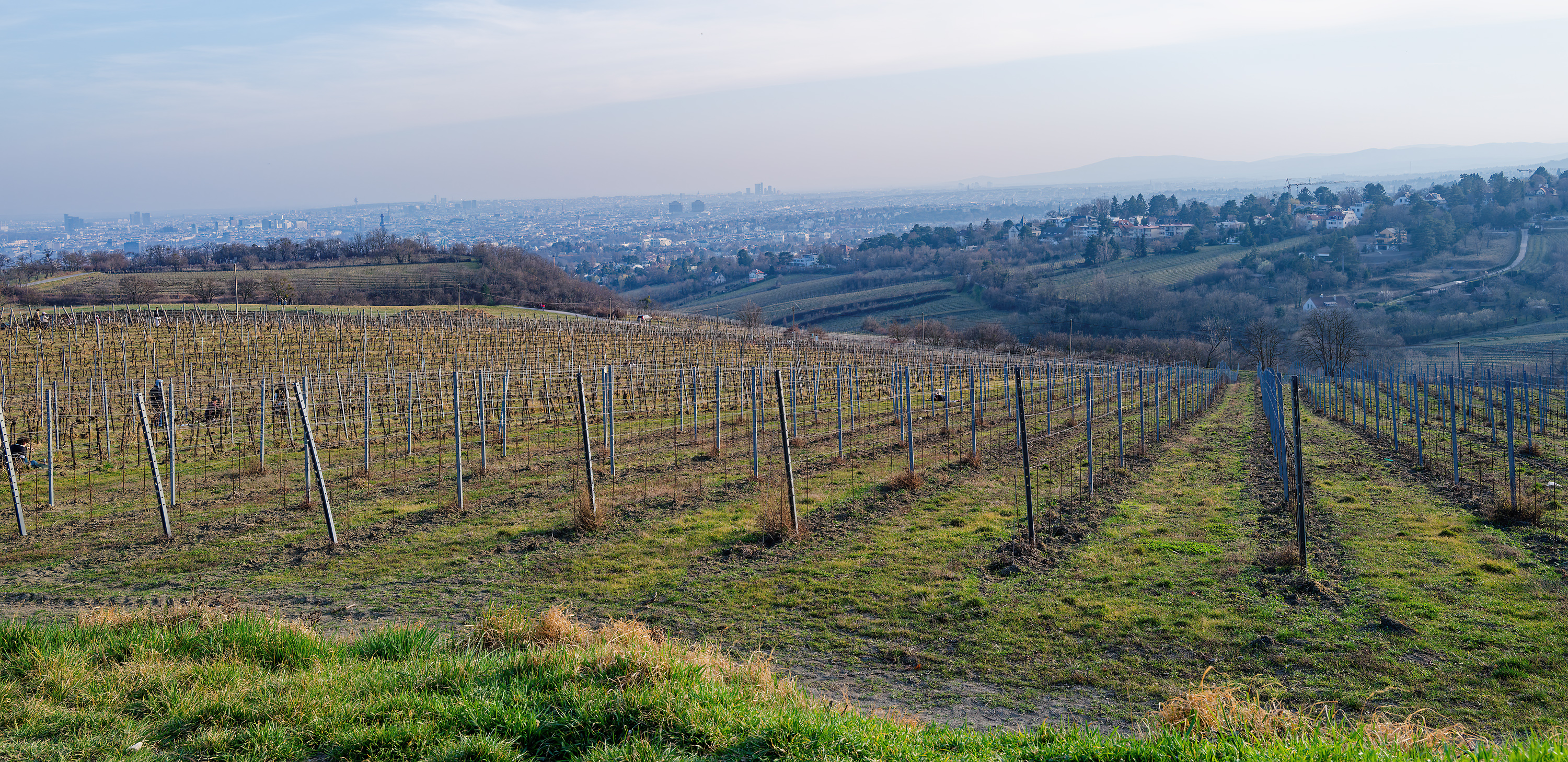 One can see the two arms of the Danube, facing downstream. The Old Danube is on the right, and the New Danube (produced by piling up what was the flood plain and making the Danube Island) on the left. Unusually, both were blue. When spring really comes, mud, etc, from upstream will turn the Old Danube brown. The New Danube is closed off at this end, and only opened when flood threaten.
