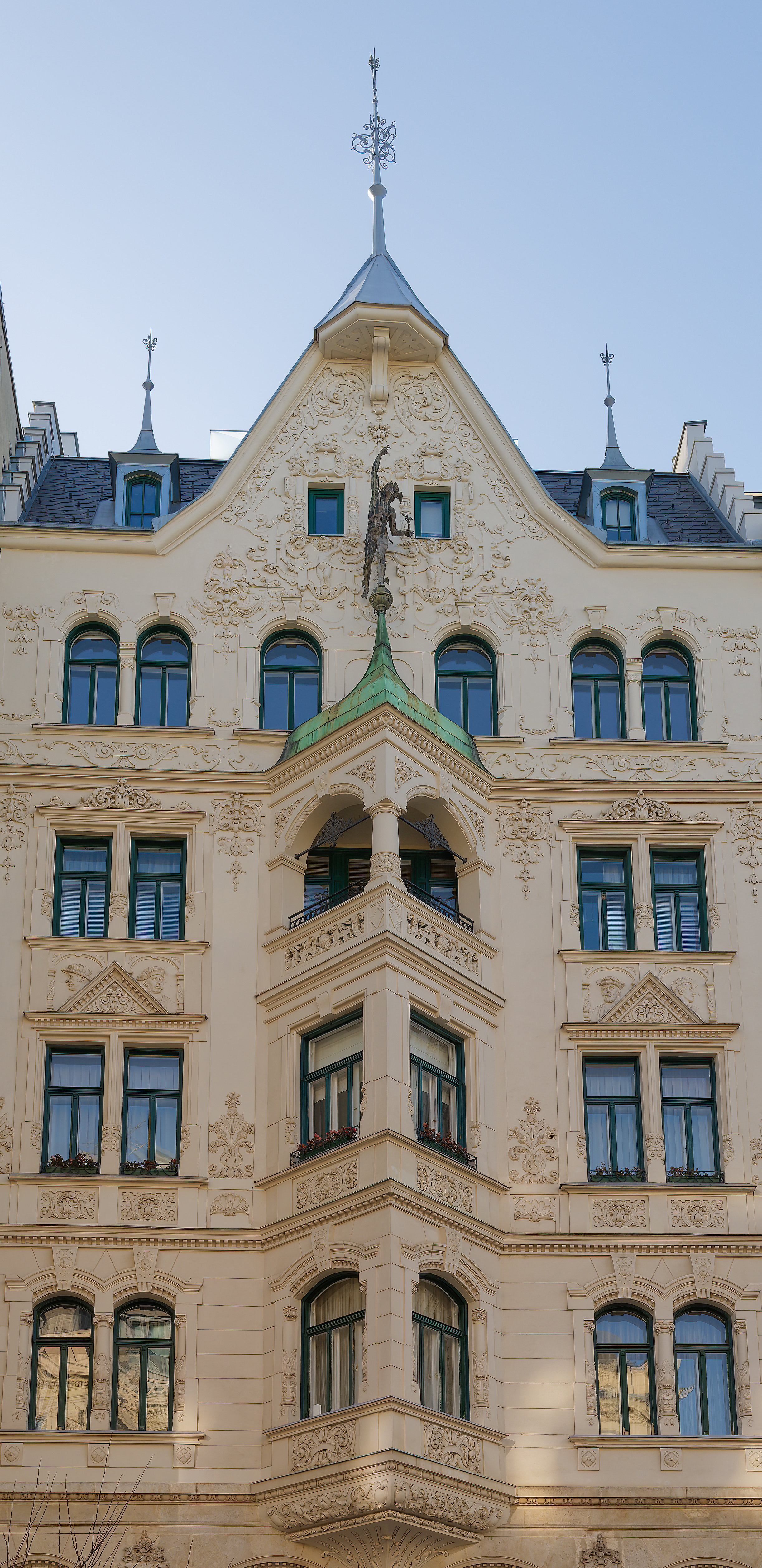 But the weather was much improved, and I took some pictures of downtown buildings. The first in Kärntnerstrasse, next to the Maltese Church. The street is so narrow that I dont think I could get a totally satisfactory photo, even if I had had my shift lens with me.