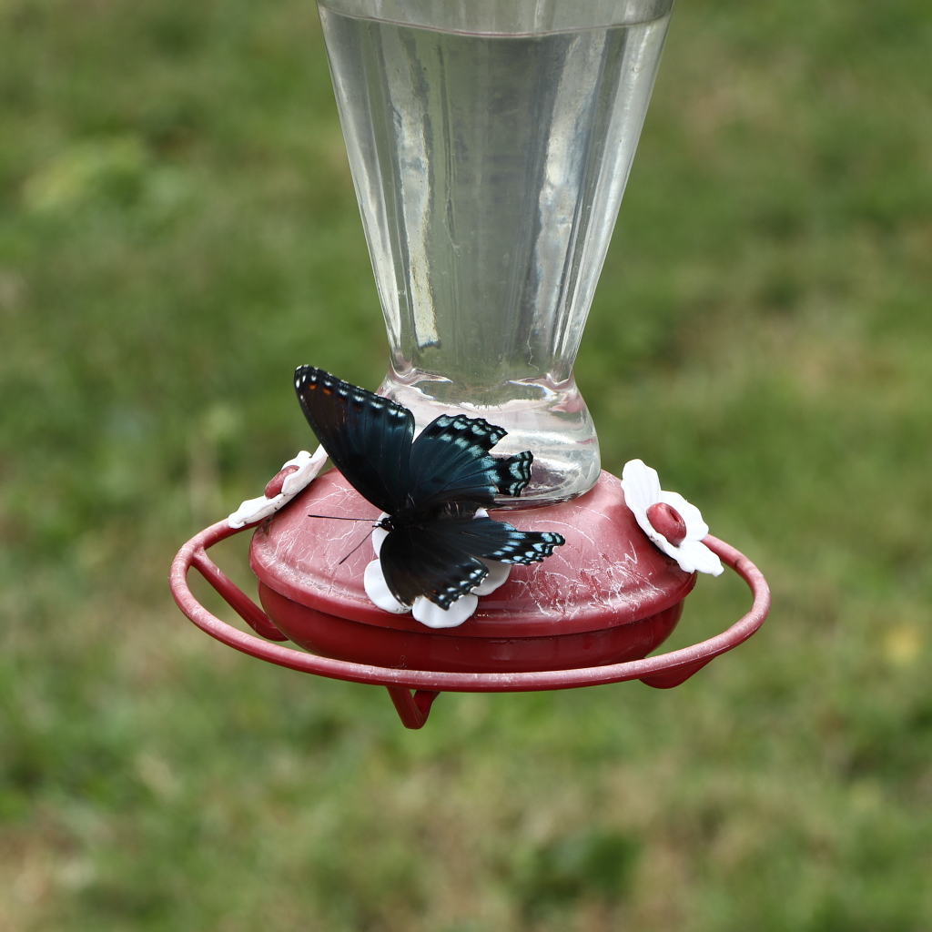 Is it a hummingbird feeder? if so, is the "joke" it being visited by a different species?