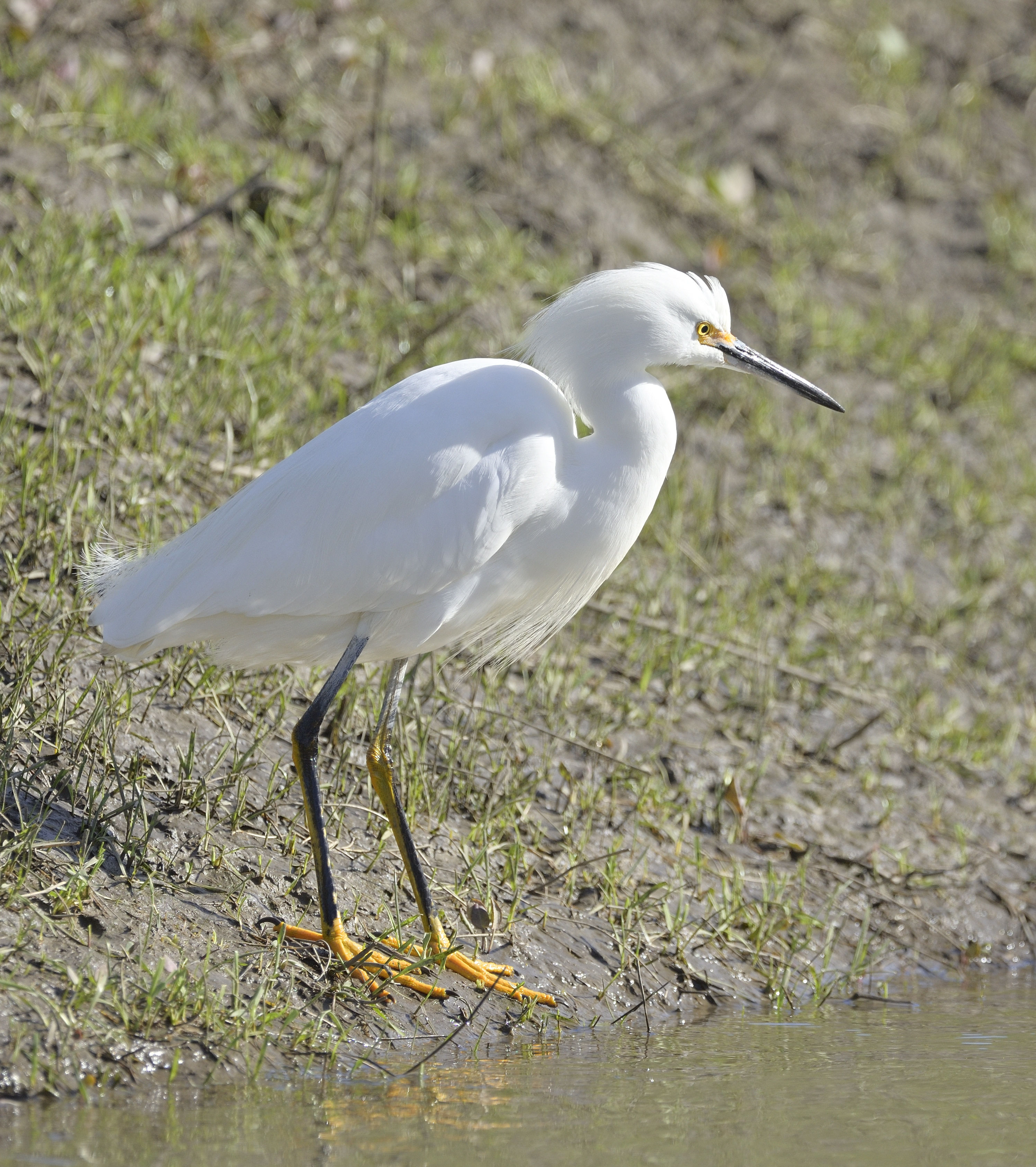 Snowy Egret. This shot has somewhat "nervous" bokeh, but I think it's mostly because the background itself is nervous. It doesn't bother me.