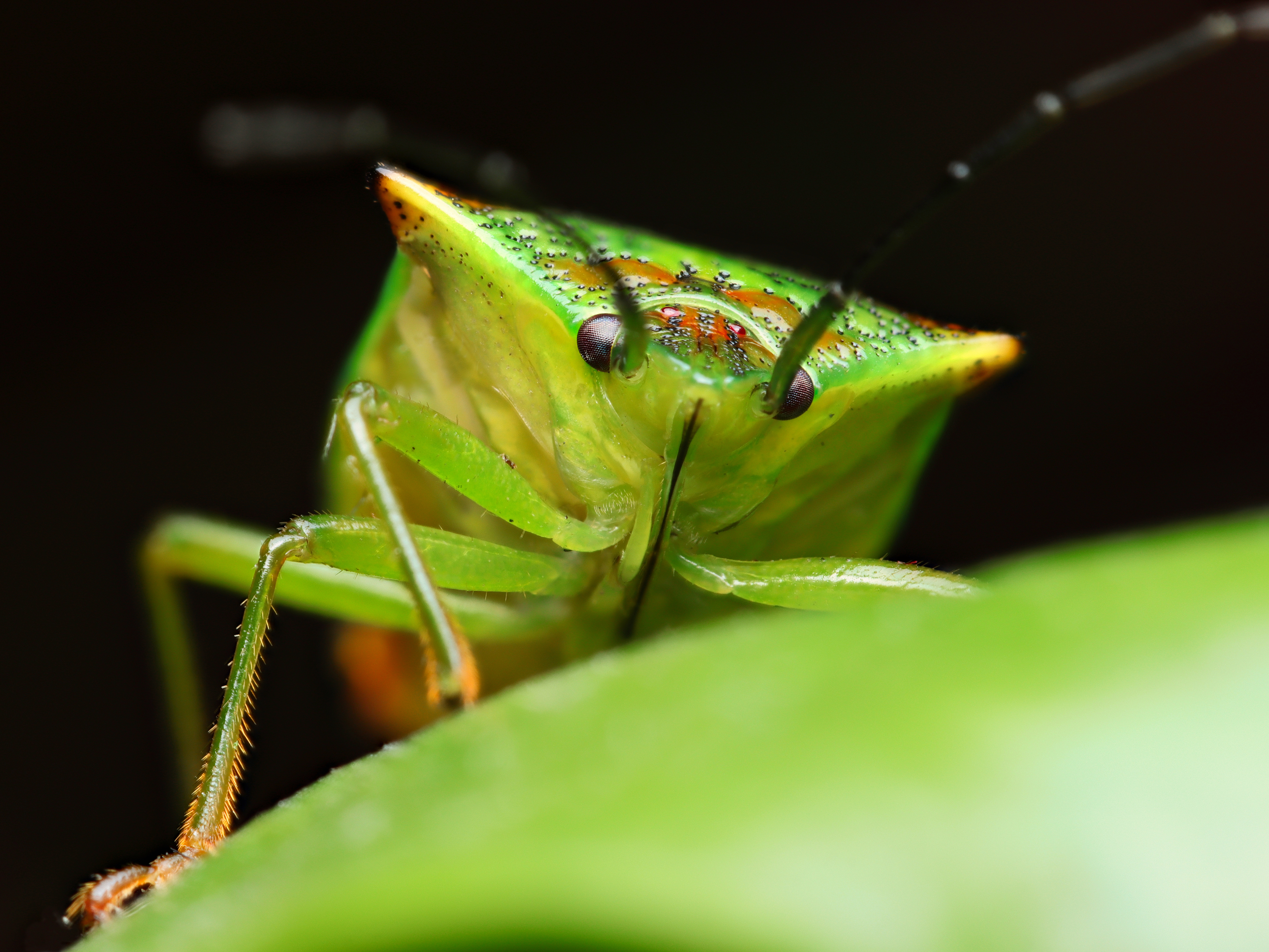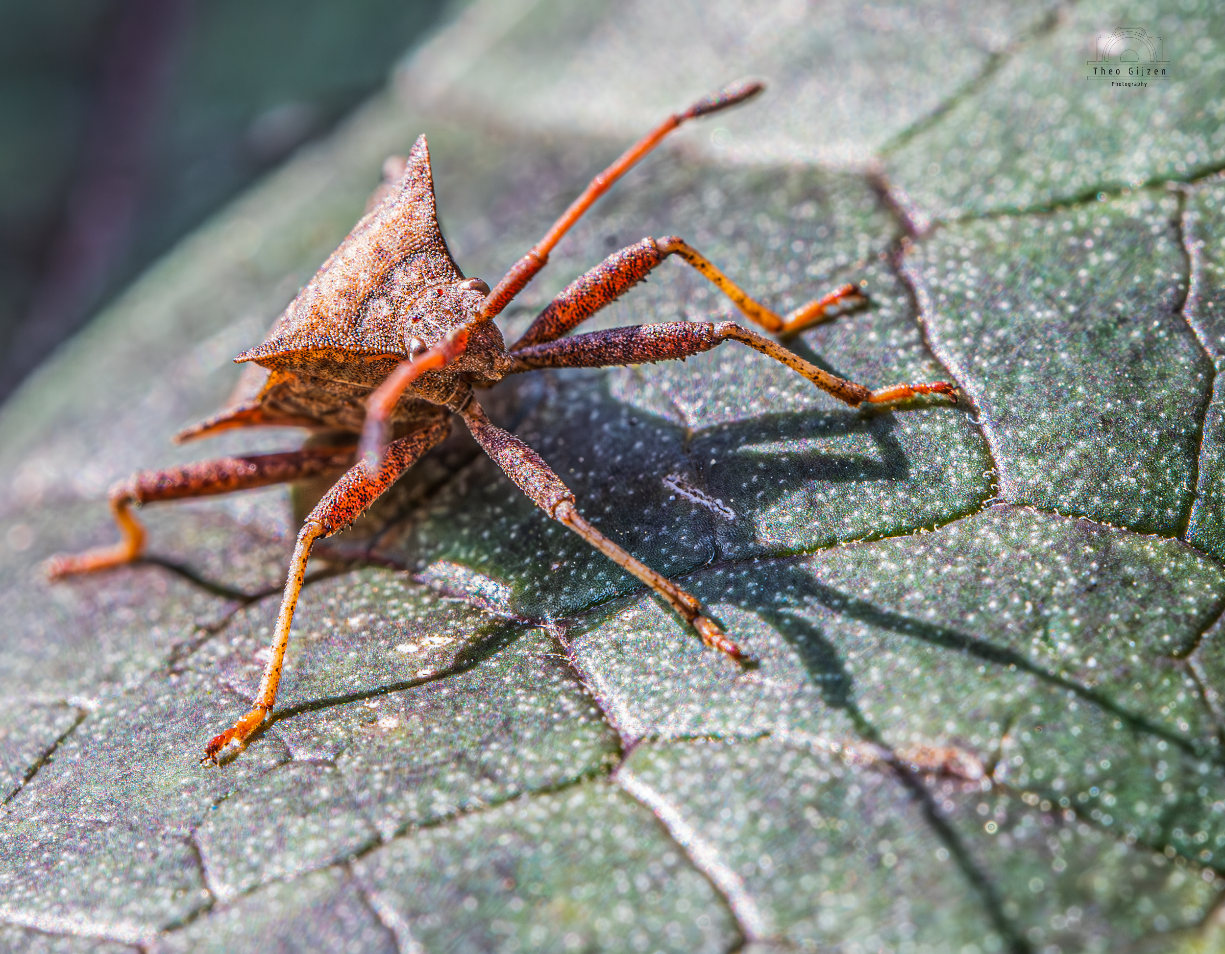 I like! Nice of the bug to settle on a leaf that complements in patterning, but contrasts in colour.