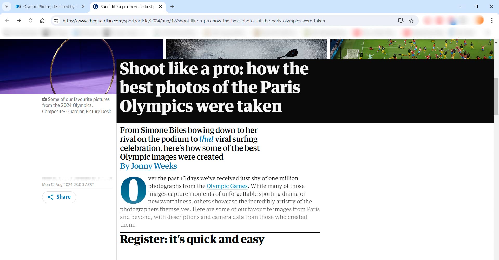 Source: www.theguardian.com/sport/article/2024/aug/12/shoot-like-a-pro-how-the-best-photos-of-the-paris-olympics-were-taken (17 Aug 2024)